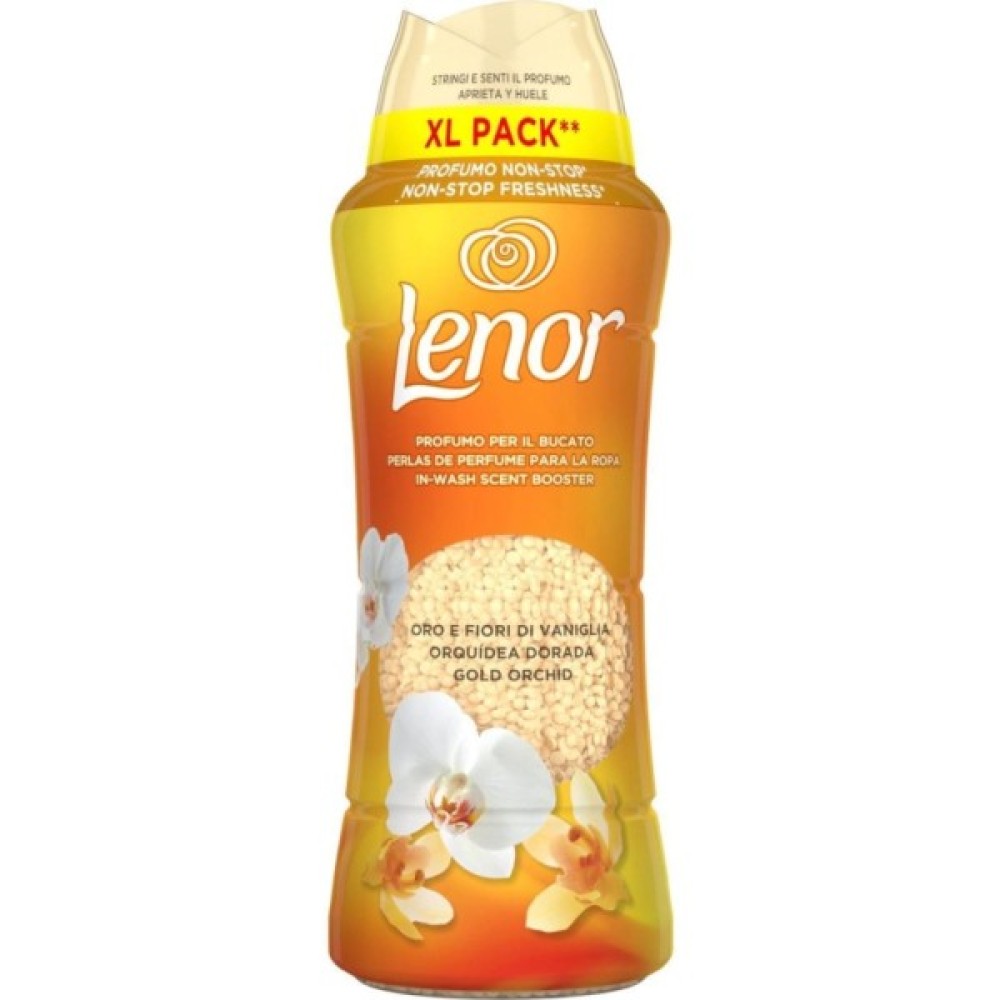 Відкрийте для себе ароматизатор для прання тканин Lenor, що забезпечує безперервну свіжість до 12 тижнів під час зберігання та надає вашому одягу аромату золотої орхідеї та ванілі.