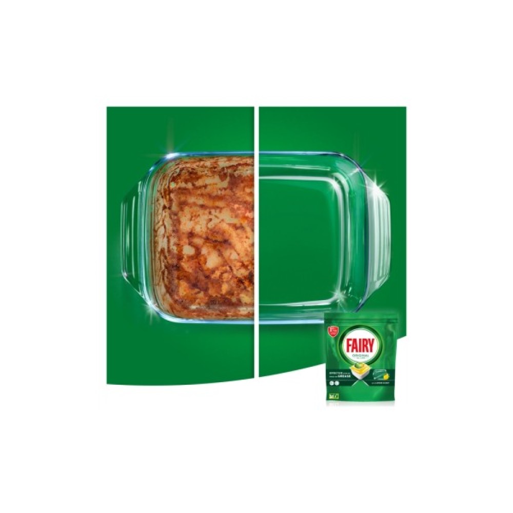 Капсули для посудомийної машини Fairy Original Все-В-Одному справляються із забрудненнями з першого разу і навіть із чистим харчовим жиром. Fairy Original поєднує рідину та порошок в одній потужній капсулі. Ультрарозчинна оболонка капсули розчиняється набагато швидше, ніж пресовані таблетки, і засіб починає працювати негайно. До того ж вони надзвичайно прості у використанні. Просто помістіть їх у відсік посудомийної машини для мийного засобу. Не потрібно нічого розпаковувати.