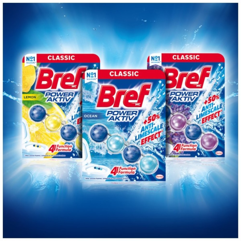 Туалетний блок Bref Сила Актив Тріопак Океанський Свіжість 3х50 г (9000100753494) - незвичайний за своїм дизайном і унікальний за своєю дією. Під час змивання Bref утворює активну піну, яка ефективно очищає поверхню унітазу і запобігає утворенню вапняного нальоту. Крім потужної формули, продукт надає приємний аромат Вашої туалетній кімнаті. Викликає подразнення шкіри. Викликає серйозне роздратування очей. Шкідливо для водних організмів з довгостроковими наслідками. Якщо необхідна рекомендація лікаря, мати при собі упаковку продукту або етикетку. Тримати в недоступному для дітей місці.