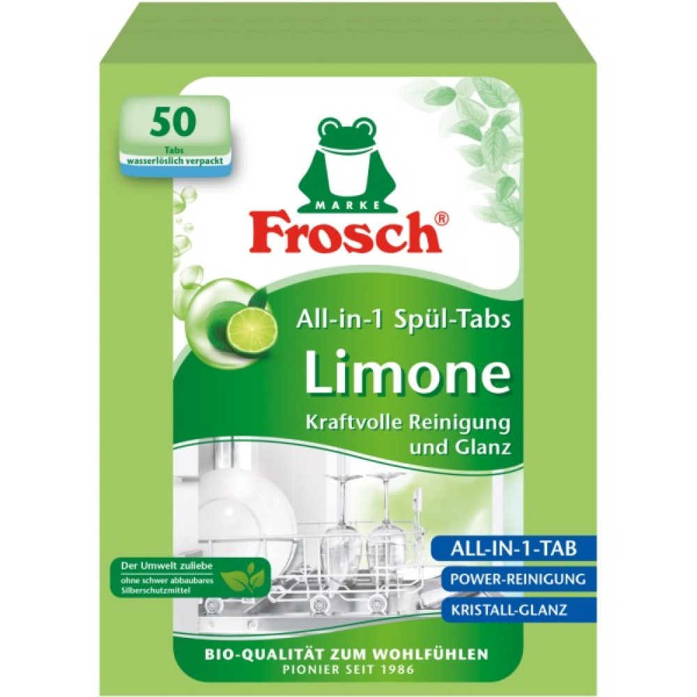 Таблетки для всіх видів автоматичних посудомийних машин — сильнодійний і інтенсивний засіб з екстрактом лимона. Екологічно безпечний. Очищає посуд до блискучої чистоти.