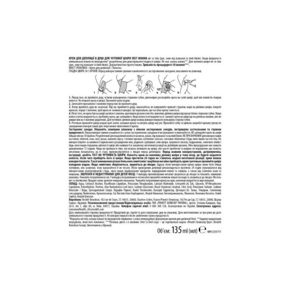 *Формула містить меншу кількістю інгредієнтів порівняно з усіма попередніми формулами кремів для депіляції Veet.