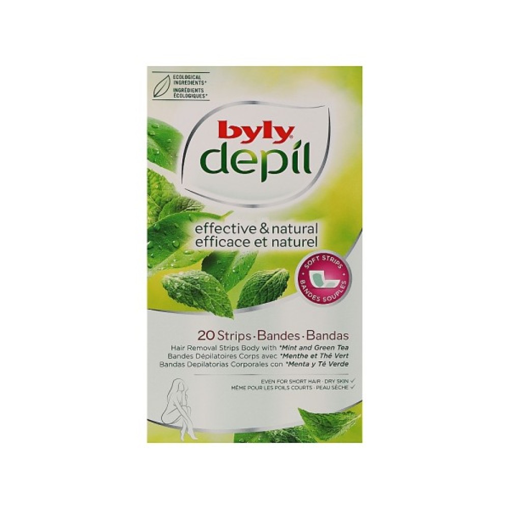 Воскові, смужки, Byly, Для, депіляції, тіла, з, М’ятою, Зеленим, чаєм, Алое, 20, шт, 8411104040502