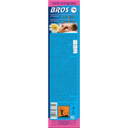 Інсектицидний засіб Bros пластини для електрофумігатора від комарів для дітей просочені розчином, що відлякує комах.