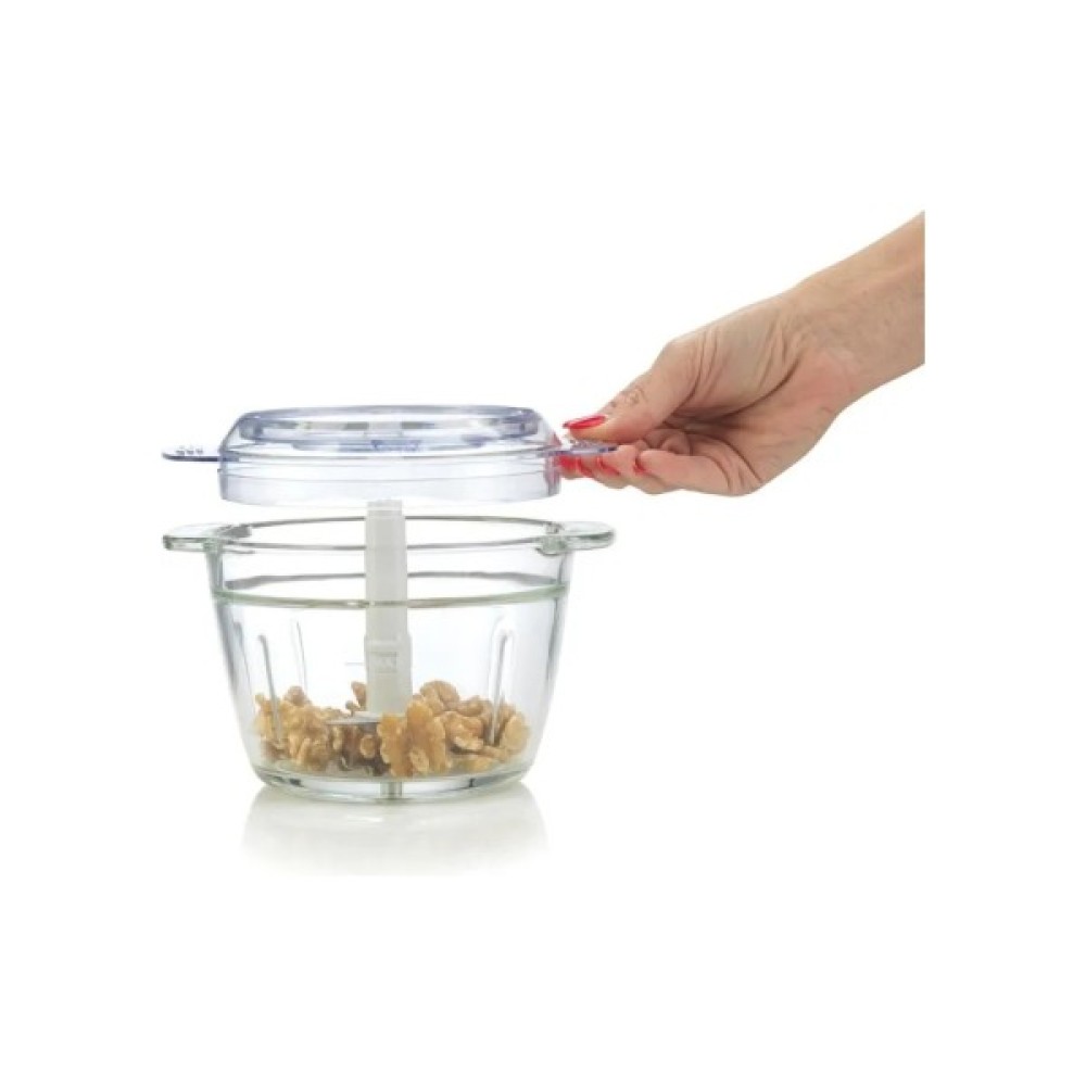 Подрібнювач можна використовувати для подрібнення фруктів, овочів, зелені або горіхів. Щоб почати подрібнення, просто натисніть на базовий блок приладу донизу. Завдяки імпульсному режиму можна здійснювати подрібнення з певними інтервалами, повністю контролюючи процес.