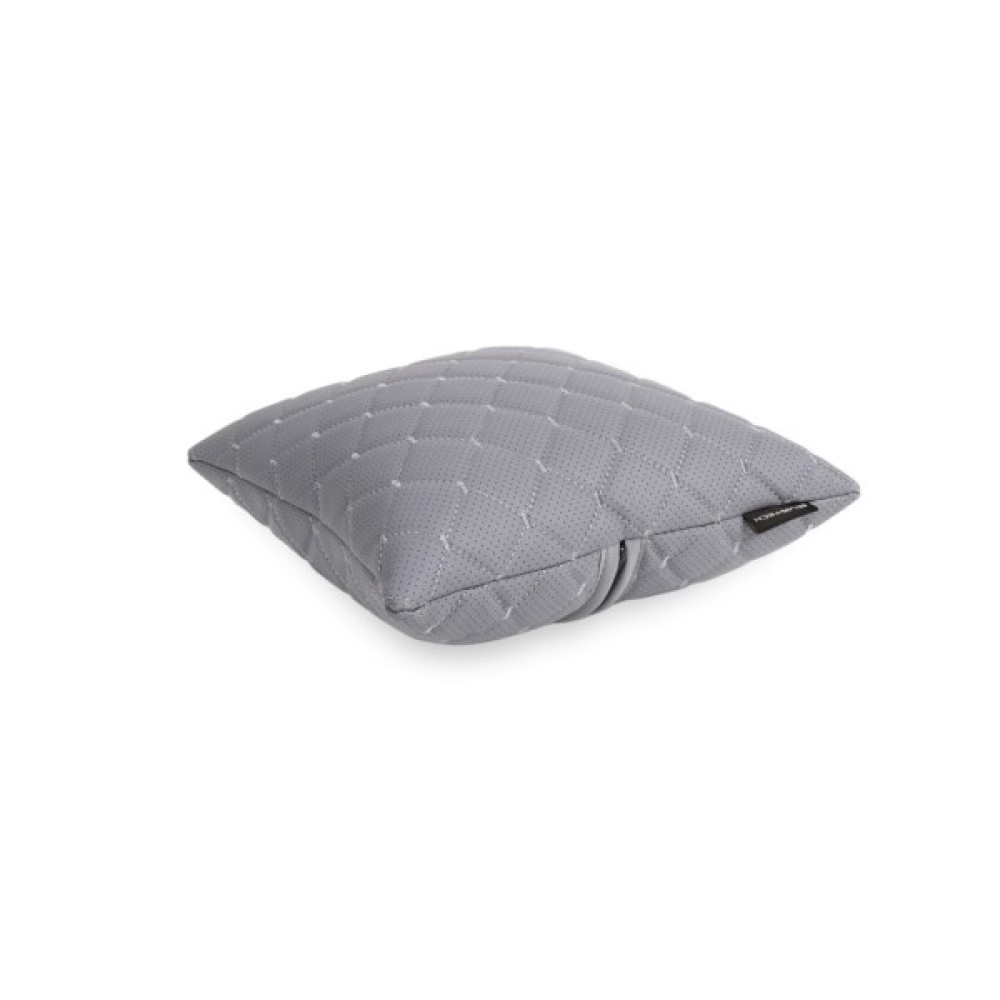 Наповнена холлофайбером, подушка м’яка та пружна, забезпечує належну підтримку спини й підходить людям із алергією завдяки гіпоалергенним властивостям наповнювача.Зовнішній чохол із екошкіри надає стильного вигляду та довговічності. Подушка також оснащена замком-блискавкою, що дозволяє за потреби зменшити кількість наповнювача, щоб налаштувати її жорсткість під власні вподобання.