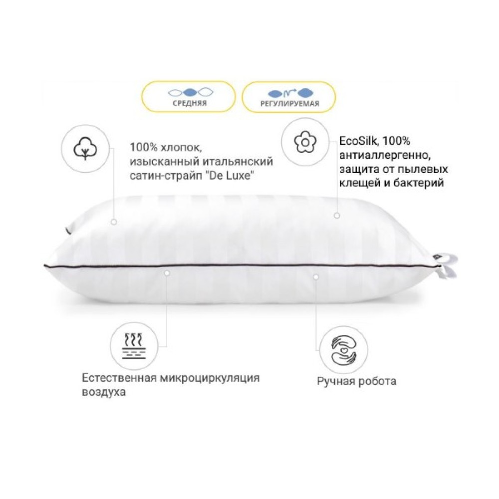 Подушка, MirSon, антиаллергенна, Royal, EcoSoft, Hand, Made, 499, середня, 40х60, см, 2200000624802