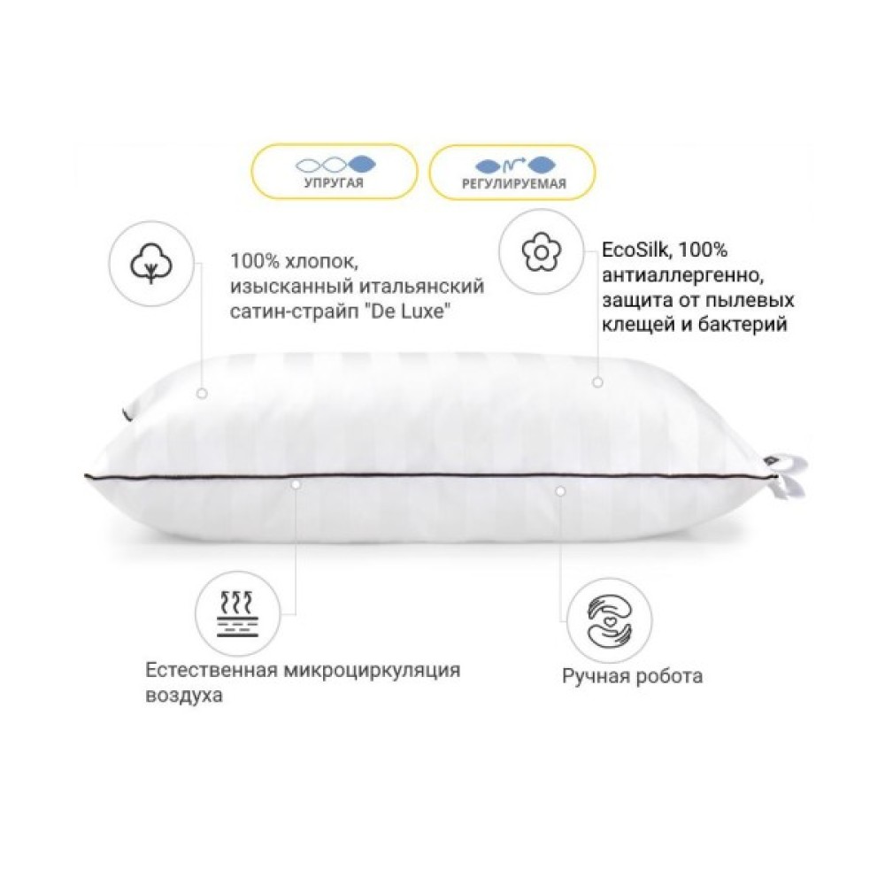 Подушка MirSon антиаллергенна Royal Eco-Soft Hand Made 500 висока 60х60 см (2200000625489)
