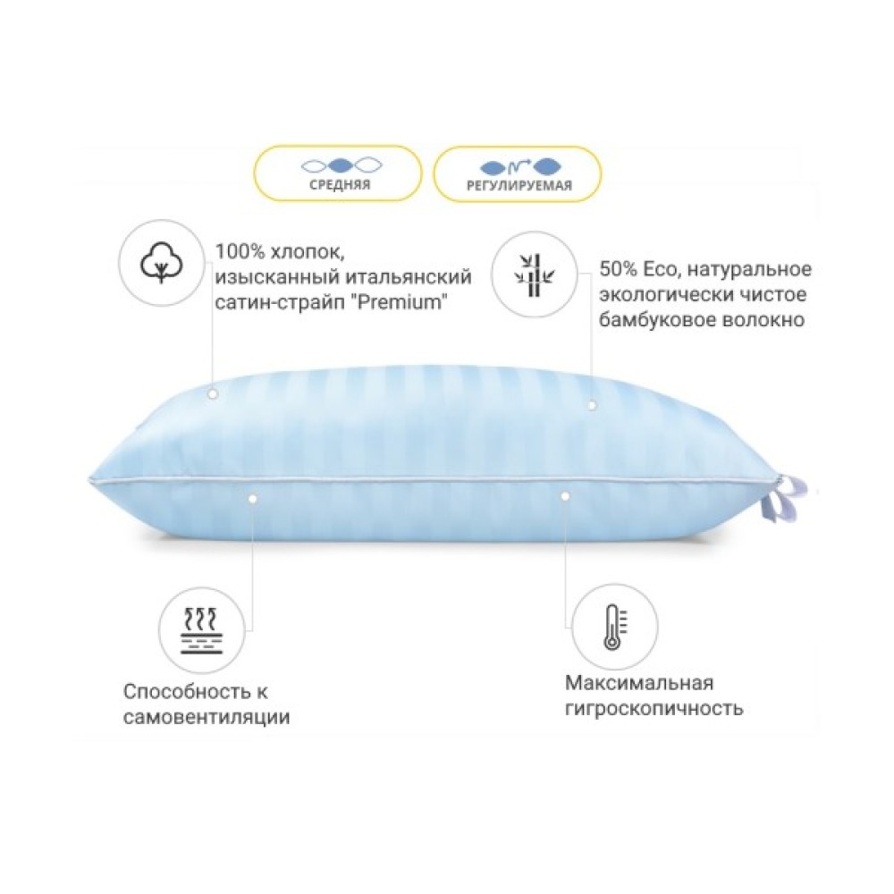 Особливості подушки: бамбукова подушка колекції Valentino Hand Made виготовлена з антиалергенного бамбукового волокна й італійського сатину, до складу якого входить 100% бавовна, яка дає змогу тілу дихати, дарує легкість і простоту в догляді. Ця подушка належить до розряду — середня, де оптимально розрахована вага наповнювача для досягнення гарних показників за пружністю. Також не хочеться втратити можливість підкреслити величезний плюс цієї подушки — вона регульована! Вся принада у тому, що в подушці є вбудована блискавка (вона розміщена збоку подушки), завдяки якій Ви в будь-який момент зможете вийняти трохи наповнювача та зробити подушку нижчою. Хочете знову зробити високою? Поверніть наповнювач на місце — і подушка набуде колишню пружність.
