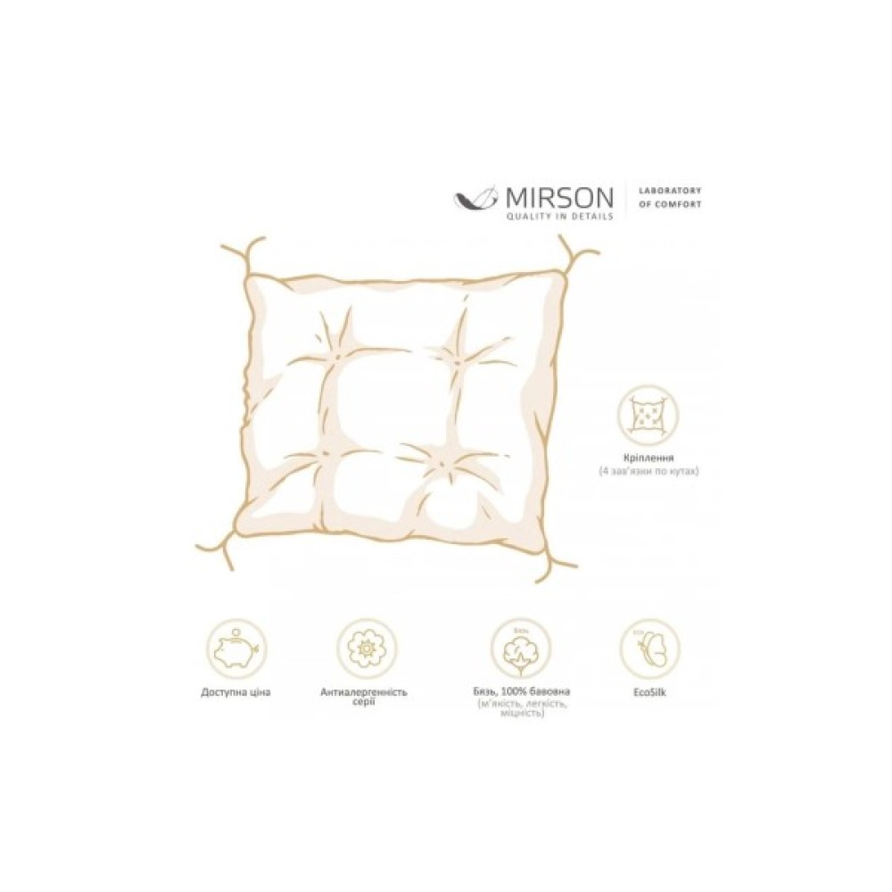 У чому ж її перевага? Ручне сортування антиалергенного наповнювача; тільки ручне пошиття; виключно якісні матеріали; італійські тканини; детальний і ретельний контроль якості.