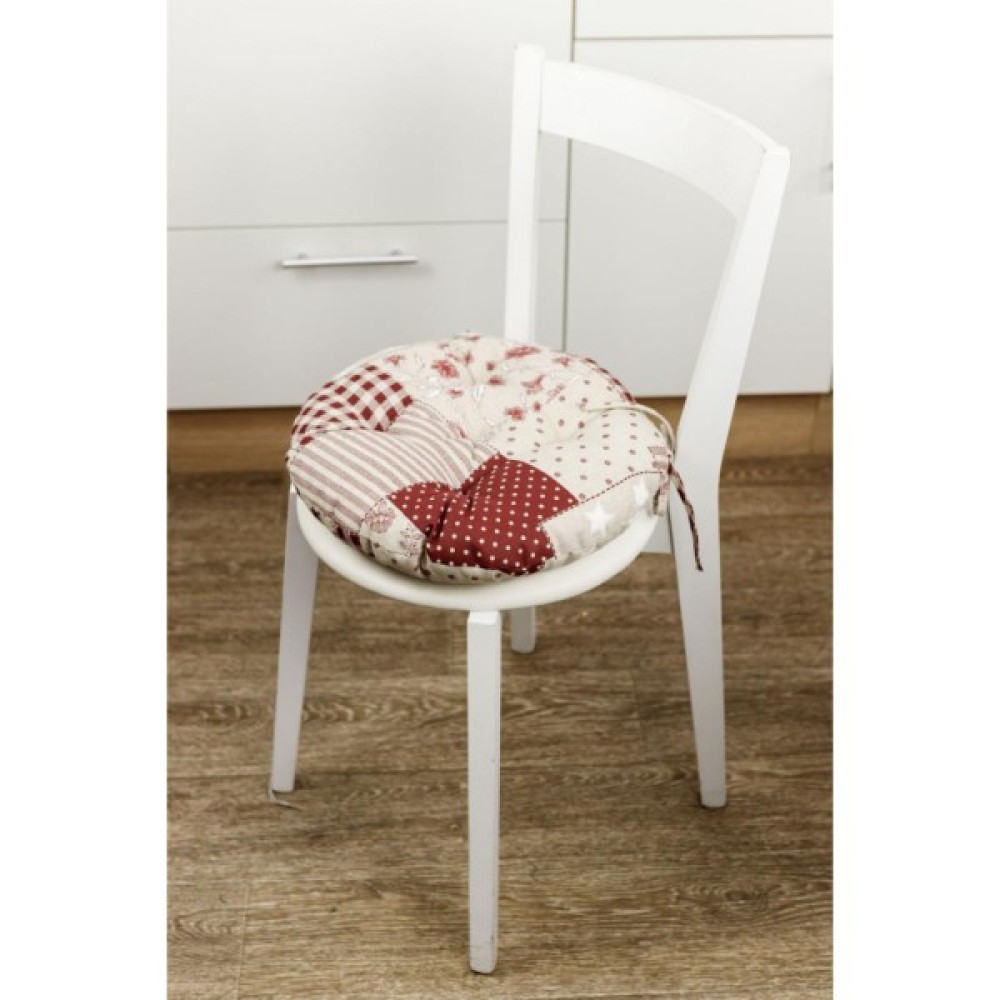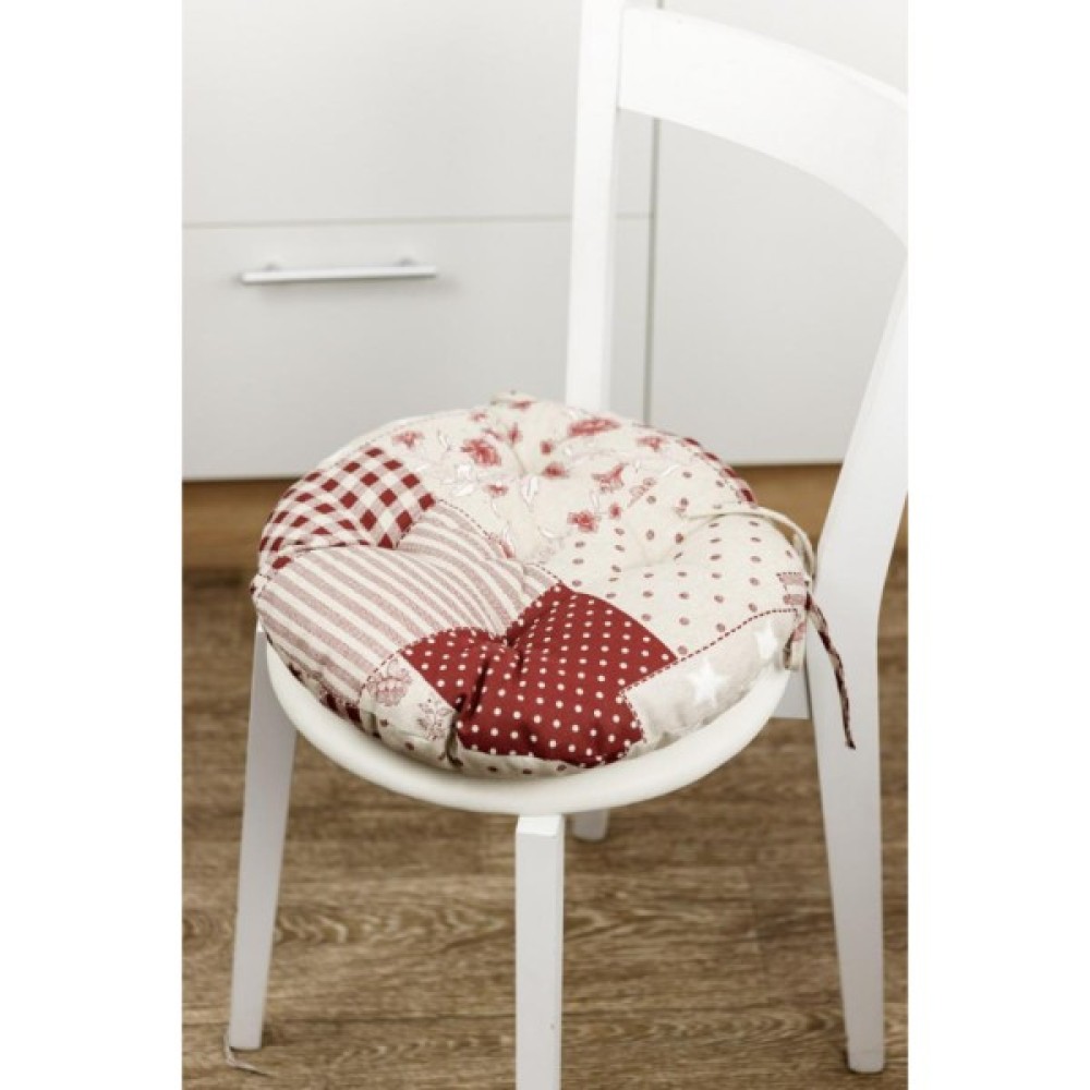 Кругла подушка діаметром 40 см кріпиться до стільця за допомогою зав'язок.