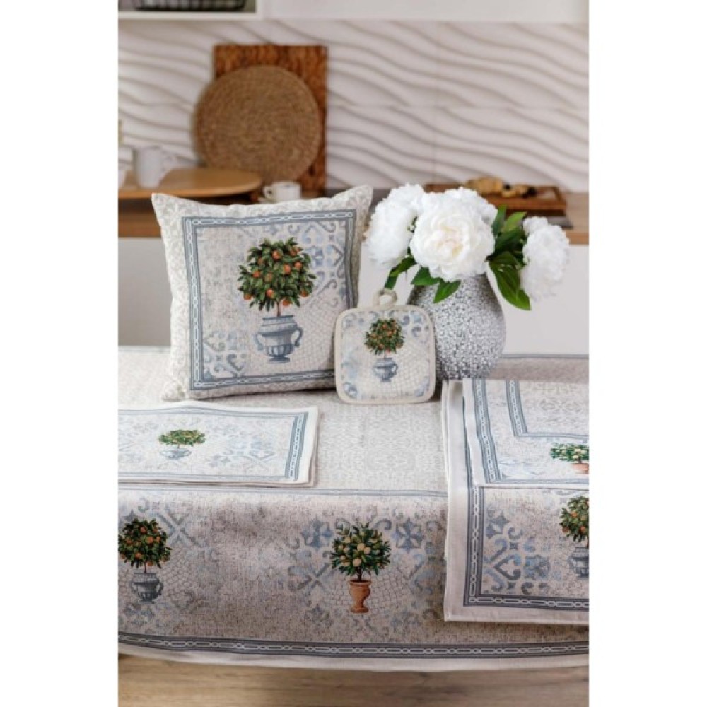 Подушка на блискавці виготовлена з високоякісної іспанської тканини. Гобеленова подушка це чудове доповнення до скатертини, серветок, фартухів, прихваток та рукавиць з колекції Афіни.