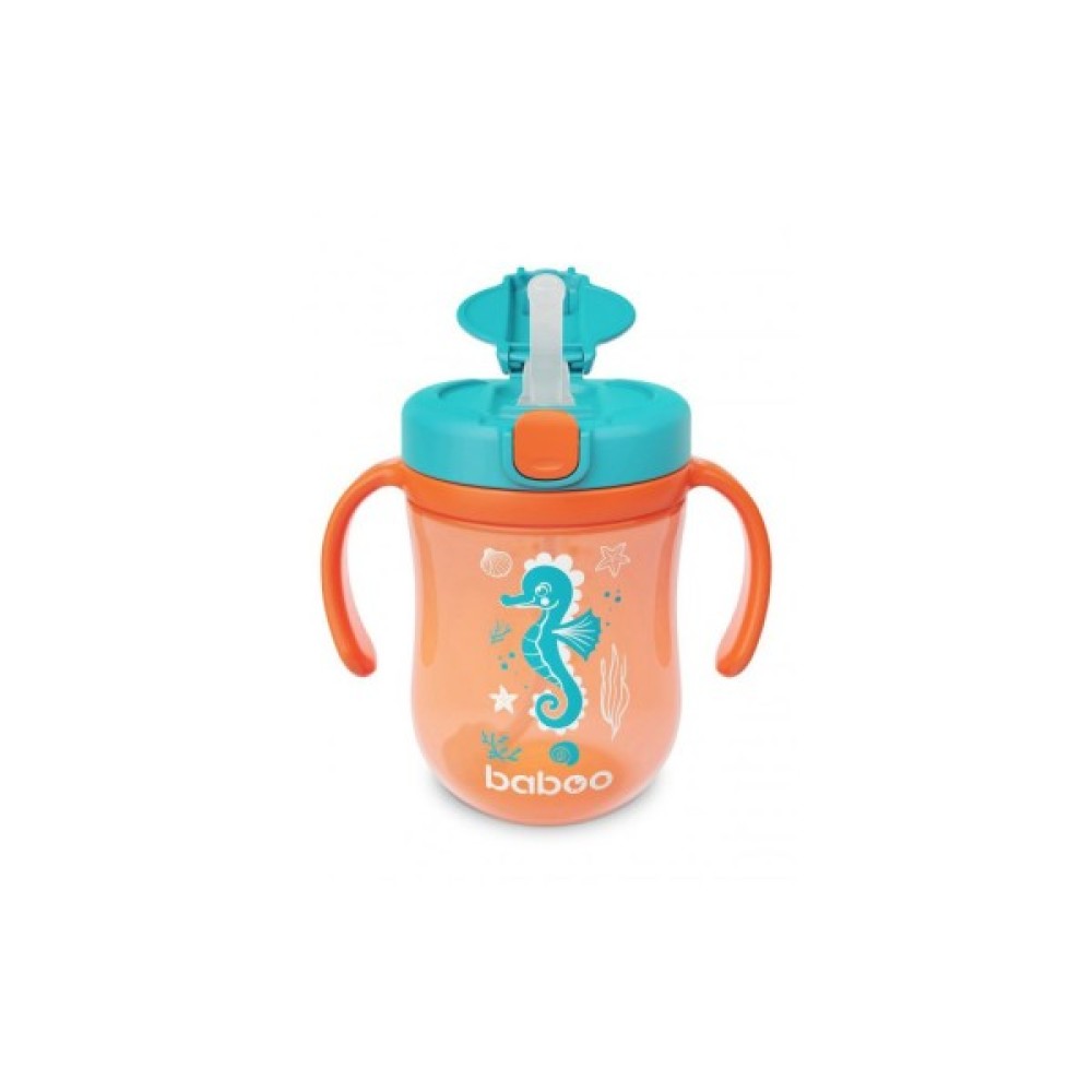 Поїльник-непроливайка Baboo з трубочкою Marine 300 мл Помаранчева (90601)