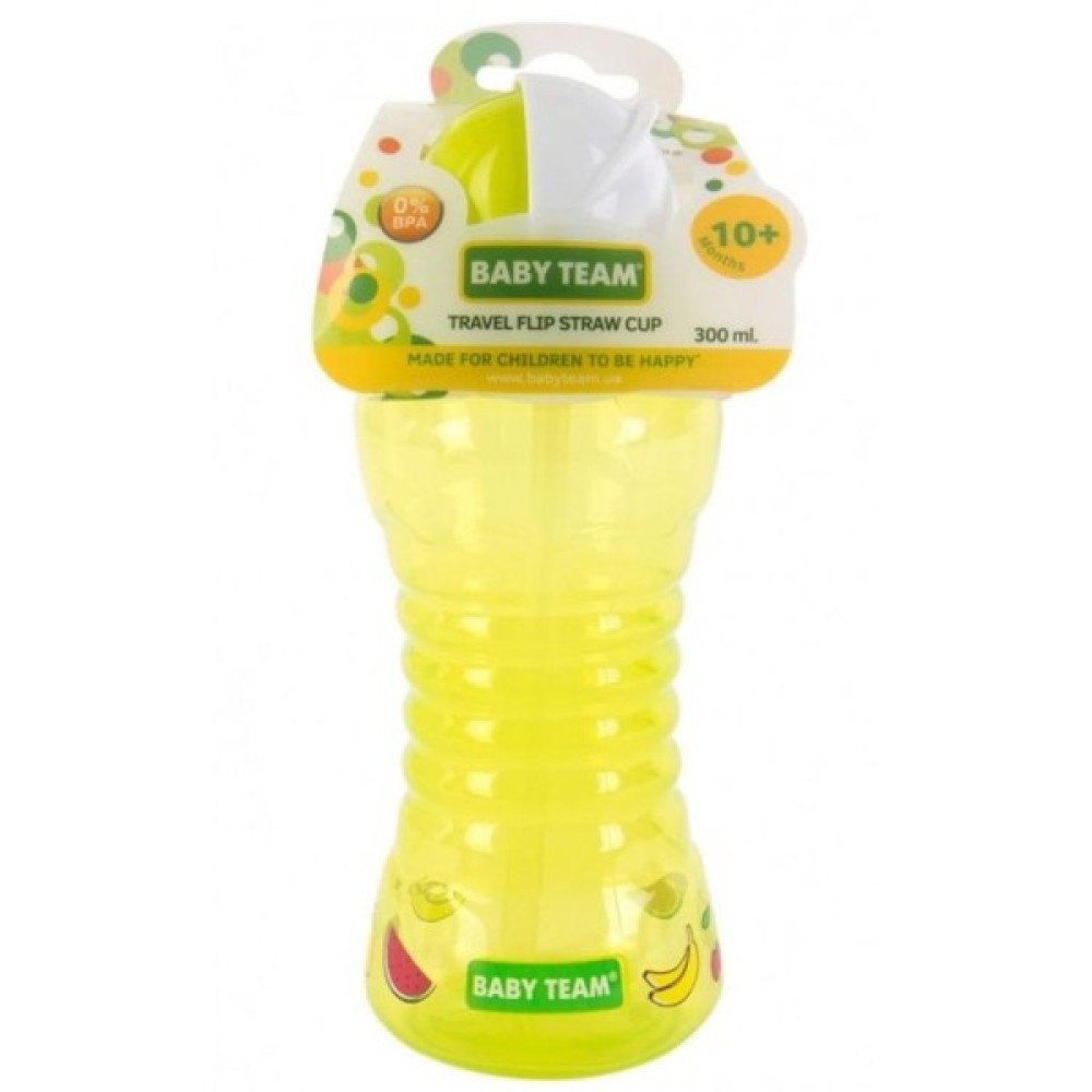 М'яка силіконова трубочка для пиття прикрита ковпачком, що захищає трубочку від забруднень в перервах між використаннями. Трубочка автоматично з'являється при відкритті ковпачка. Ідеально підходить для нетривалих прогулянок і подорожей. Можна використовувати в мікрохвильовій печі, стерилізувати і мити в посудомийній машині (верхній рівень). Поїльники Baby team виготовлені з високоякісних і безпечних матеріалів, а також не містять шкідливих речовин і Бісфенол А.