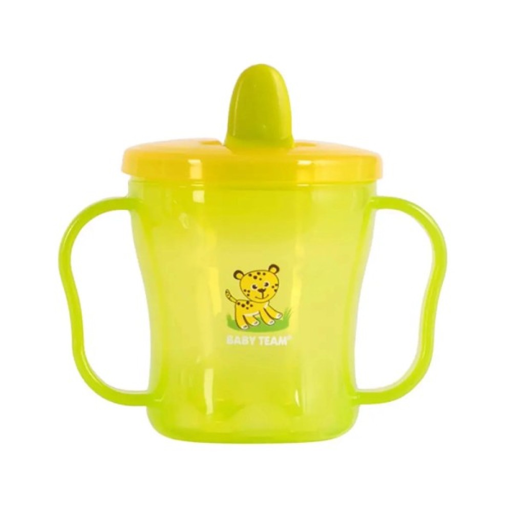 BABY TEAM Поїльник допомагає Вашій дитині комфортно та безпечно перейти від годування з пляшечки до чашки. Має зручні ручки та герметичну кришку з носиком, що складається.Можна використовувати в мікрохвильовій печі, стерилізувати та мити в посудомийній машині (верхній рівень). Поїльники Baby team виготовлені з високоякісних і безпечних матеріалів, а також не містять шкідливих речовин та Бісфенол А.