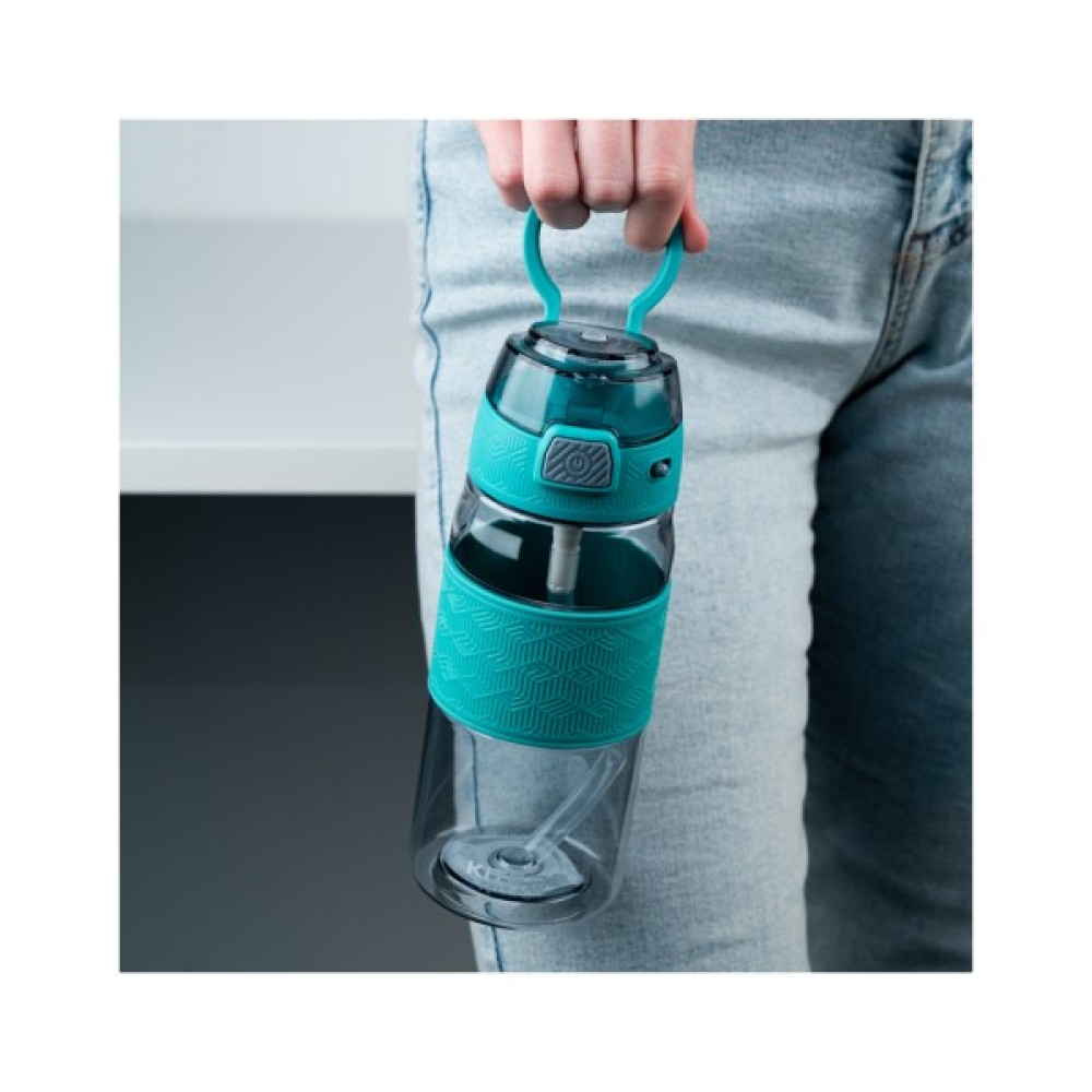 Має силіконову трубочку, завдяки якій зручно пити навіть на ходу. Кришечка надійно закривається, не даючи воді проливатися, а також захищає мундштук від забруднень. Фіксатор блокує кришечку, захищаючи від мимовільного відкриття. Область тримання з рельєфним прогумованим покриттям – приємна на дотик, не ковзає в руці.