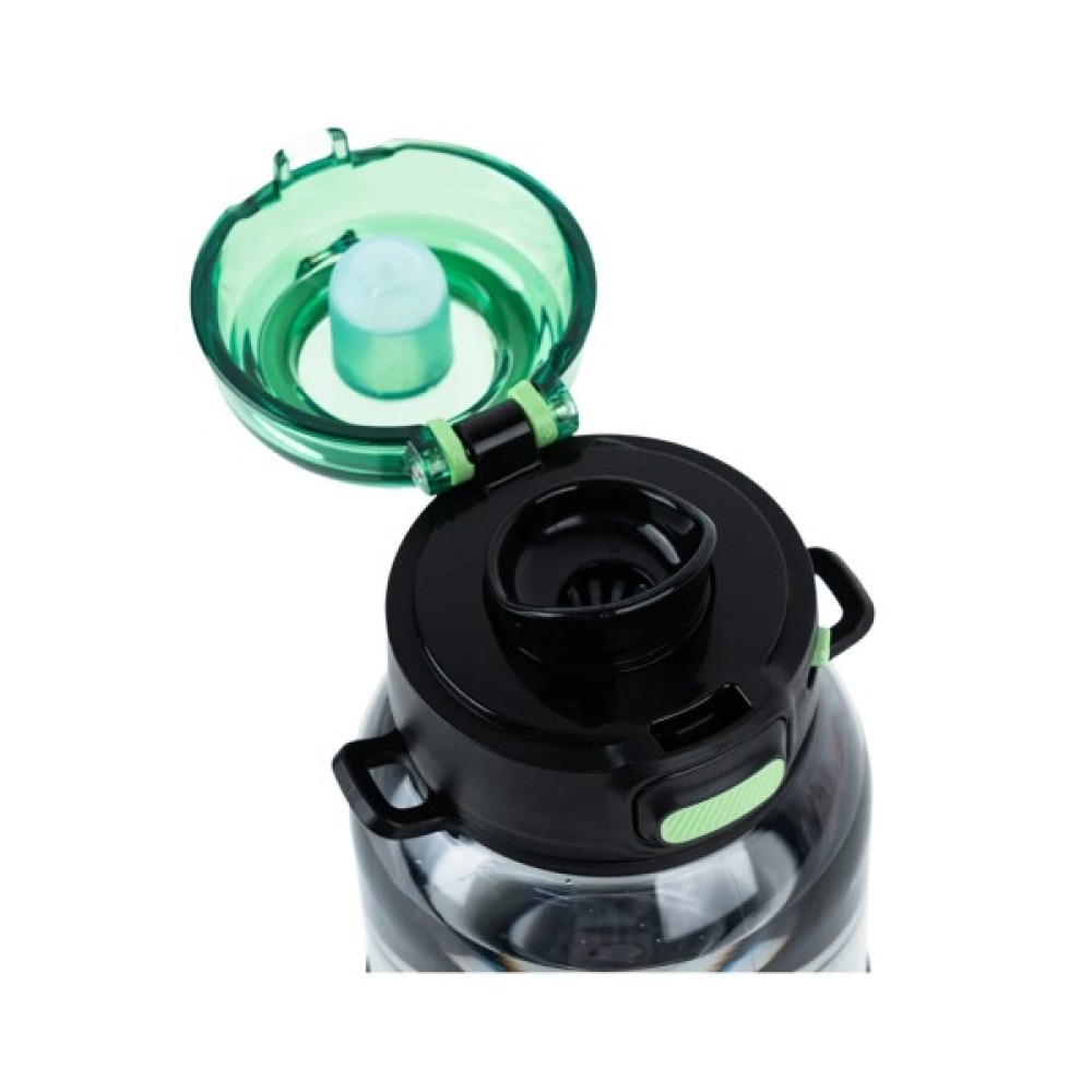 Кришка відкривається одним натисканням і фіксується від випадкового розкриття. Має практичну пластикову ручку-кільце. У комплекті — знімний ремінець на карабінах для зручного носіння. Герметична конструкція захищає рюкзак від протікань, а широке горлечко полегшує миття. Це практичний аксесуар, який поєднує функціональність і стиль.