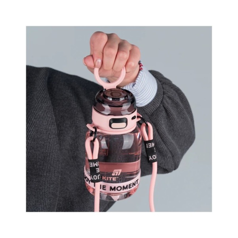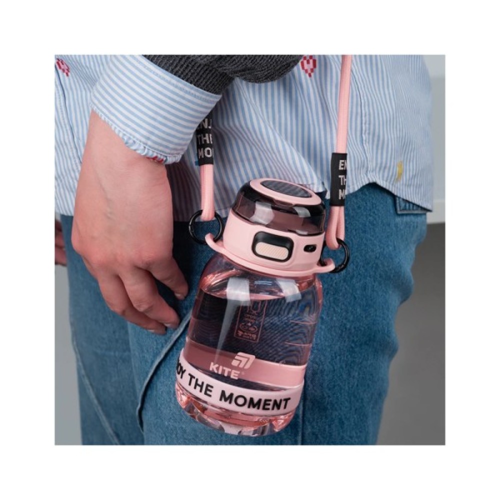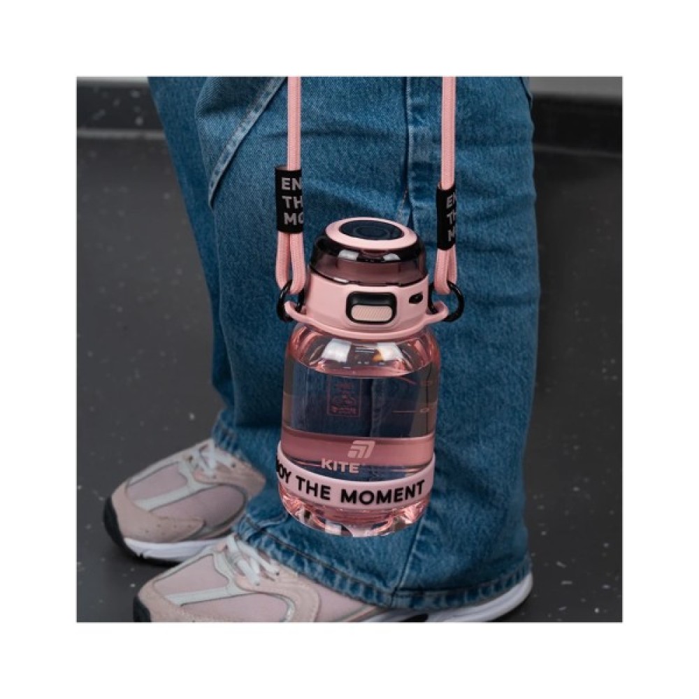 Пляшечка для води Kite — це заряд гарного настрою у стильному форматі. Її кольори гармонійні, але з характером, а напис ENJOY THE MOMENT нагадує цінувати кожну мить. Виконана із безпечного тритану, пляшка не містить бісфенол-А, не вбирає запахи й не змінює смак напоїв. З нею зручно в школі, на тренуванні чи просто в дорозі — вона легка, міцна й приємна на вигляд.