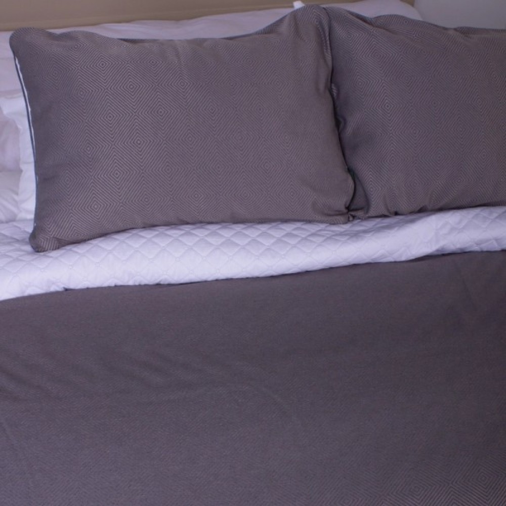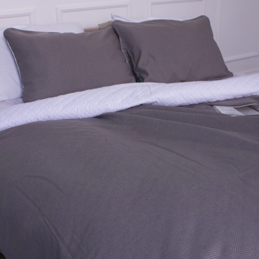 Чудове двостороннє покривало з 2 наволочками з цікавим рельєфним тисненням. Завдяки тому, що покривало має два різні кольори з кожного боку, його можна змінювати за бажанням кожною стороною. Покривало колекції LA COLORS гармонійно доповнить будь-яку інтер'єрну композицію та стане окрасою кімнати. Воно чудово пропускає повітря роблячи ваш відпочинок комфортним, прикрасить вашу постіль та зігріє вас прохолодним вечором.
