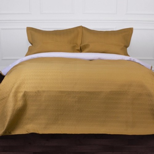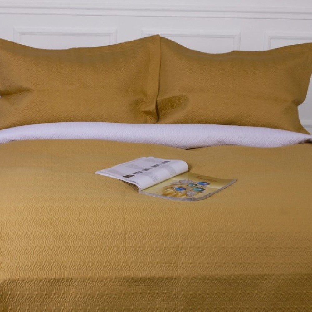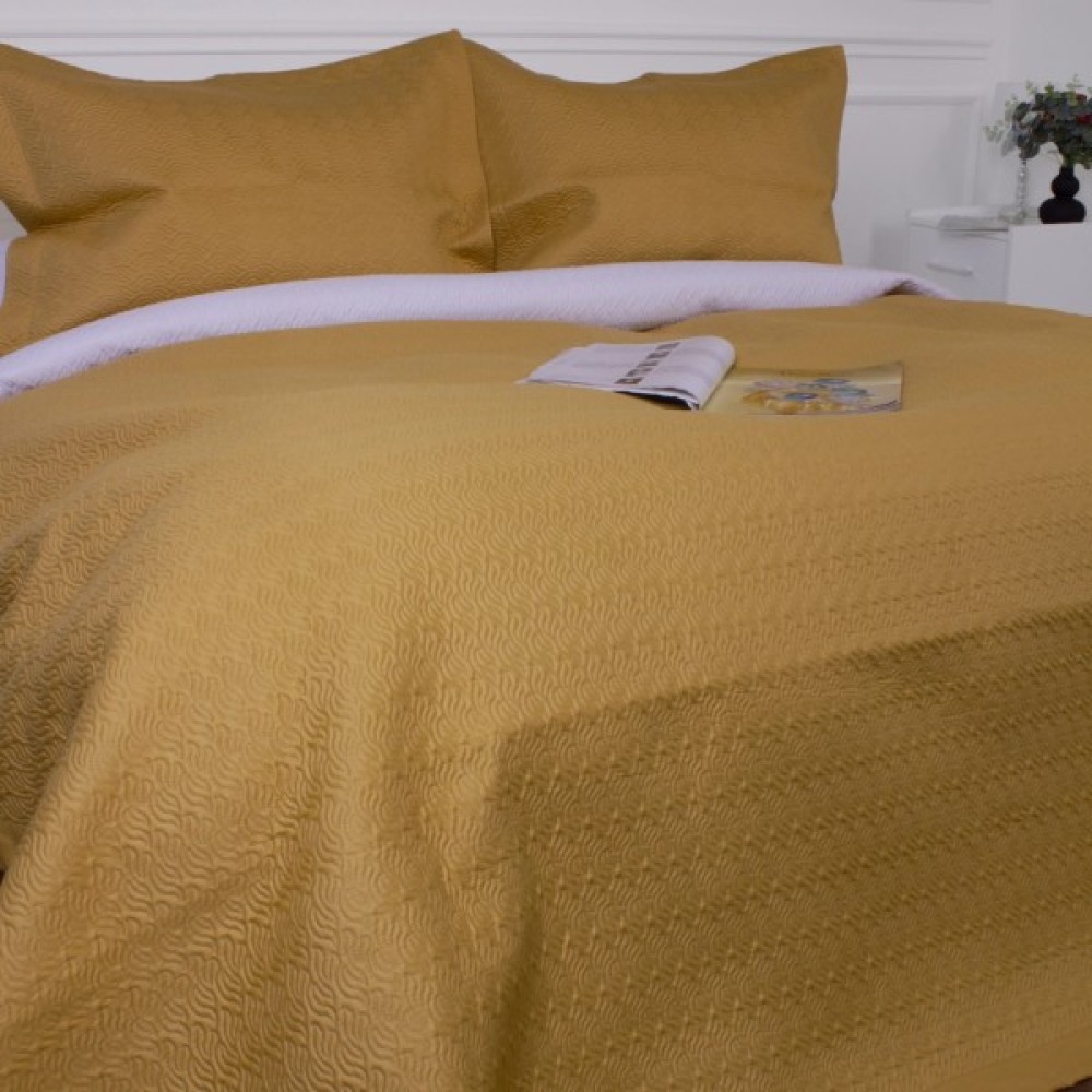 Чудове двостороннє покривало з двома наволочками з цікавим рельєфним тисненням. Завдяки тому, що покривало має два різні кольори з кожного боку, його можна змінювати за бажанням кожною стороною. Покривало колекції Green Line гармонійно доповнить будь-яку інтер'єрну композицію та стане окрасою кімнати. Воно чудово пропускає повітря роблячи ваш відпочинок комфортним, прикрасить вашу постіль та зігріє вас прохолодним вечором.