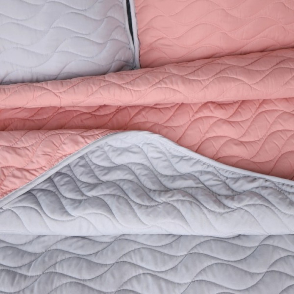 Чудове двостороннє покривало з 2 наволочками з цікавим рельєфним тисненням. Завдяки тому, що покривало має два різні кольори з кожного боку, його можна змінювати за бажанням кожною стороною. Покривало колекції Serenity Line гармонійно доповнить будь-яку інтер'єрну композицію та стане окрасою кімнати. Воно чудово пропускає повітря роблячи ваш відпочинок комфортним, прикрасить вашу постіль та зігріє вас прохолодним вечором.