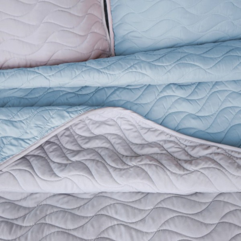 Чудове двостороннє покривало з 2 наволочками з цікавим рельєфним тисненням. Завдяки тому, що покривало має два різні кольори з кожного боку, його можна змінювати за бажанням кожною стороною. Покривало колекції Serenity Line гармонійно доповнить будь-яку інтер'єрну композицію та стане окрасою кімнати. Воно чудово пропускає повітря роблячи ваш відпочинок комфортним, прикрасить вашу постіль та зігріє вас прохолодним вечором.