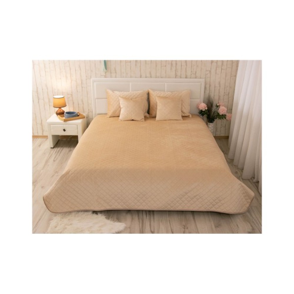 Покривало Руно двостороннє декоративне Velour Beige ромб 150х220 см (360.55_Beige ромб)