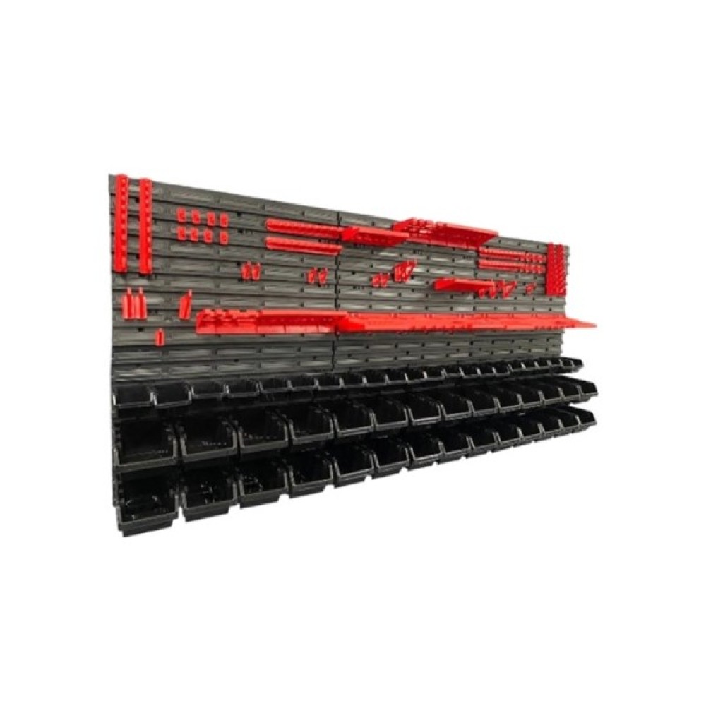 Розмір полка для інструменту - 384 х 111 х 50 мм; ємність для зберігання - 115 х 80 х 60 мм; полка для інструменту - 580 х 158 х 67 мм; підвісна дошка - 576 х 390 х 18 мм; ємність для зберігання - 195 х 120 х 90 мм; полка для інструменту - 190 х 111 х 55 мм; гачки для інструменту - 200 х 320 мм