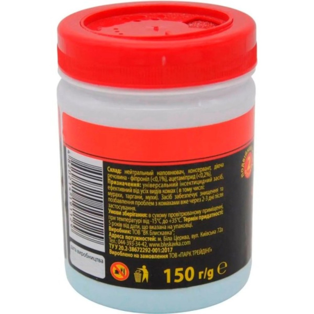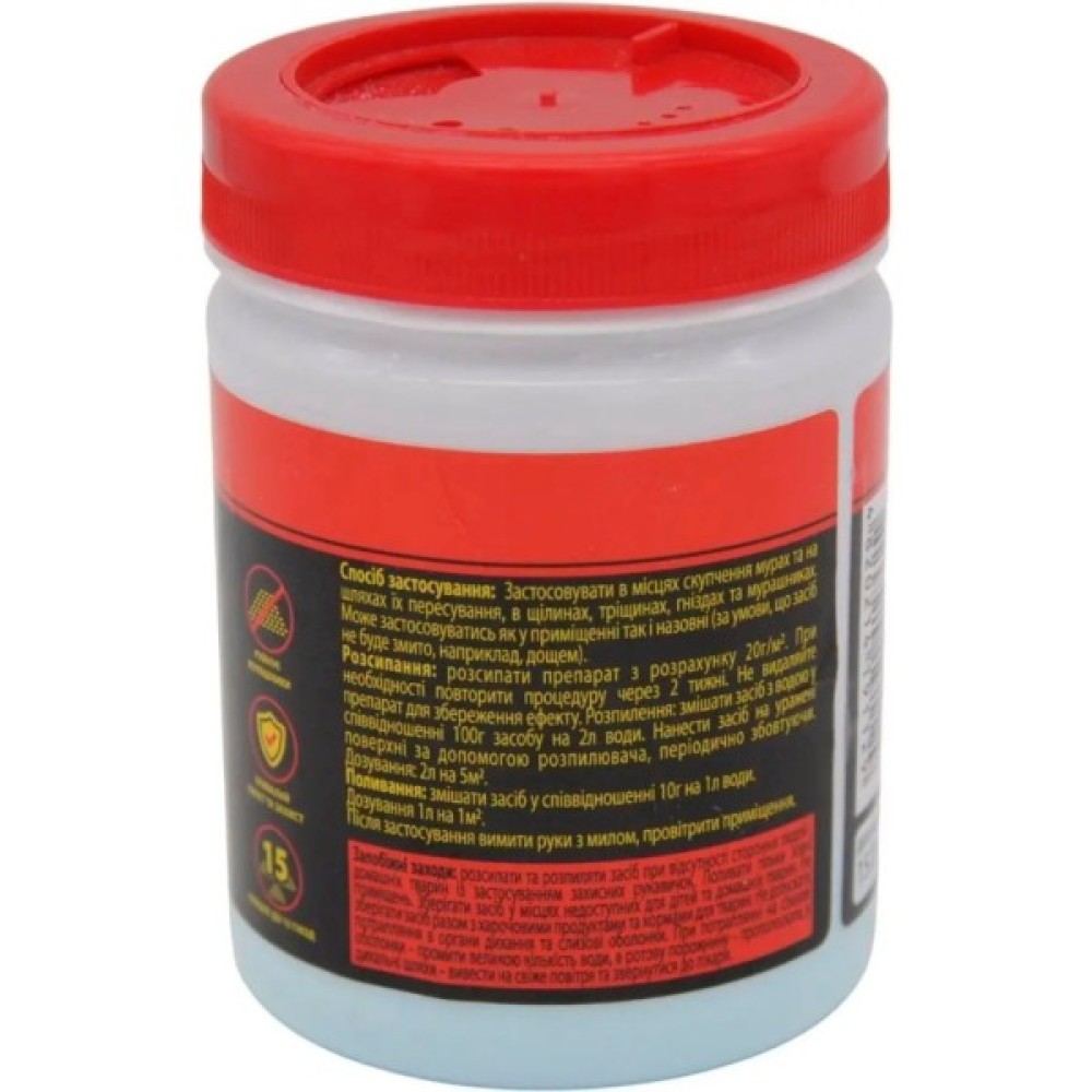 Використовувати в місцях скупчення тарганів та мурах та на шляках їх пересування, в щілинах, тріщинах, гніздах та мурашниках. Може застосовуватись як у приміщенні, так і назовні (за умови, що засіб не буде змито, наприклад, дощем). Розсипання: розсипати препарат невеликими порціями на шматочки паперу (один пакет на 5-10 порцій). Регулярно повторювати процедуру раз на 2 тижні. До повного знищення комах. Розпилення: змішати засіб з водою у співвідношенні 20 г (g) засобу на 0,5 л (l) води. Нанести