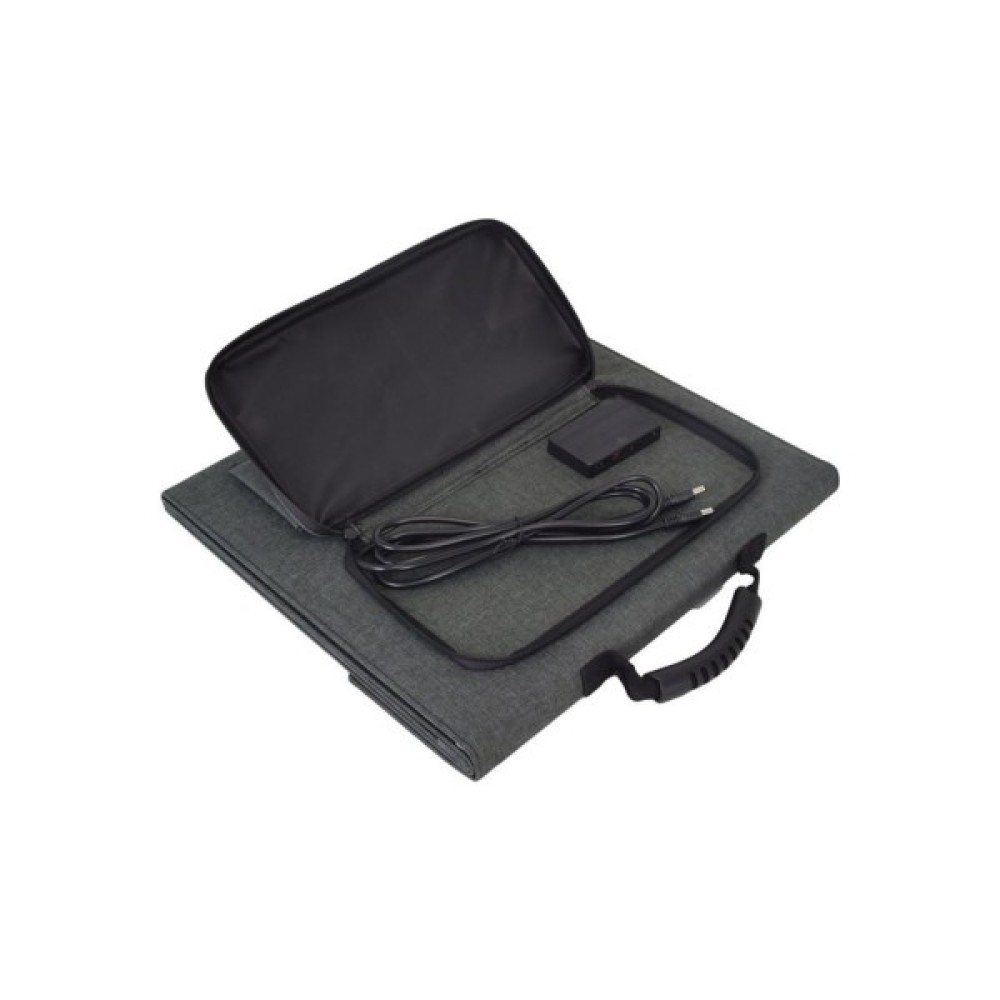 Портативна сонячна панель Full Energy SP-100 - призначена для перетворення сонячної енергії в електричну. Потужність: 100 Вт, 19~22 В. Матеріал: Монокристалічні елементи +ETFE. Вихід: DC5521+Type-C+USB+USB QC3.0. Розмір у складеному вигляді: 585×358×80 мм. Розмір у розкладеному вигляді: 1470×585×5 мм