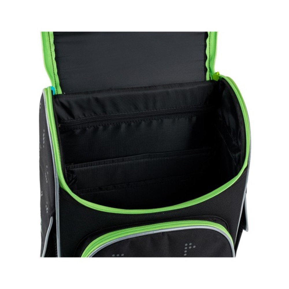 - Завдяки жорсткій формі та наявності роздільників, усе залишається на своєму місці — книжки і зошити не ковзають і не мнуться.