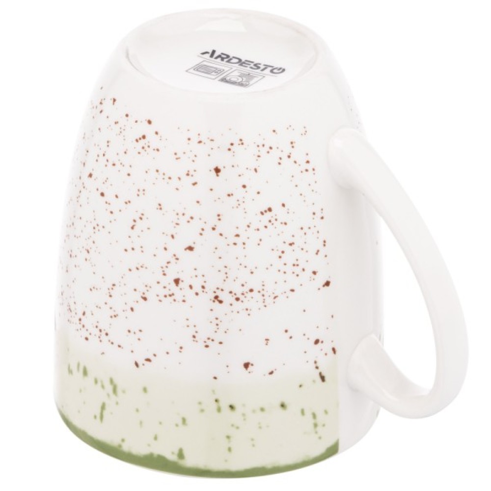 Вироби ARDESTO серії Siena можна використовувати в мікрохвильовій печі. Чашка біло-зеленого кольору має об’єм 360 мл.