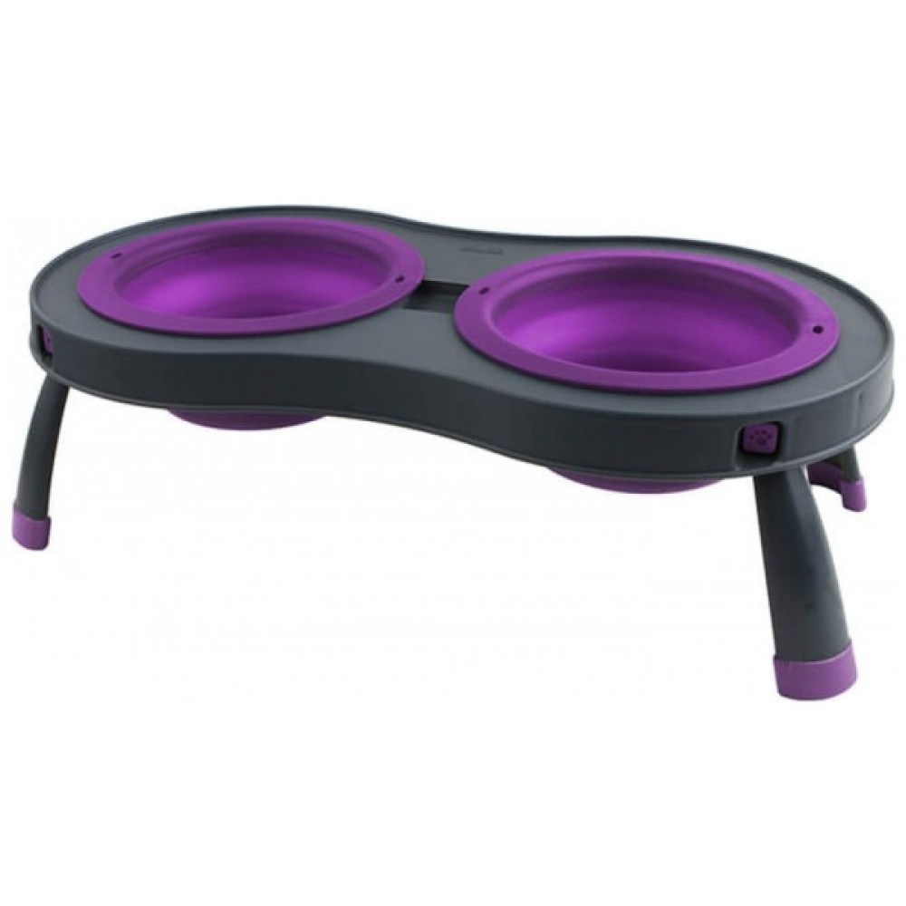 Посуд, собак, Dexas, Миска, подвійна, складній, підставцівелика, 600, мл, фіолетова, 0084297306878