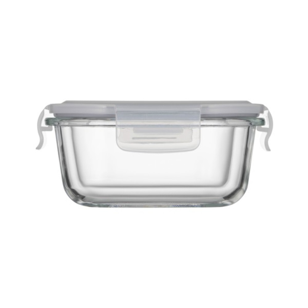 Контейнер виготовлено з екологічного боросилікатного скла, яке не вбирає запахів, зберігаючи аромат і смак продуктів, та гарантує довговічність виробу. Пластикова кришка забезпечує герметичність. Завдяки термостійкості виробу його можна залишати в морозильній камері, холодильнику, використовувати для підігрівання страв в мікрохвильовій печі або приготування в духовій шафі (без кришки). Контейнер прозорий – це допомагає ідентифікувати продукти. Виріб можна мити в посудомийній машині. У контейнері зручно як зберігати страви або продукти вдома, так і брати з собою в офіс чи в подорож.