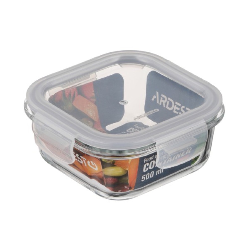 Харчовий, контейнер, Ardesto, Gemini, квадратний, 05л, боросилікатне, скло, прозорий, AR1250BSQ