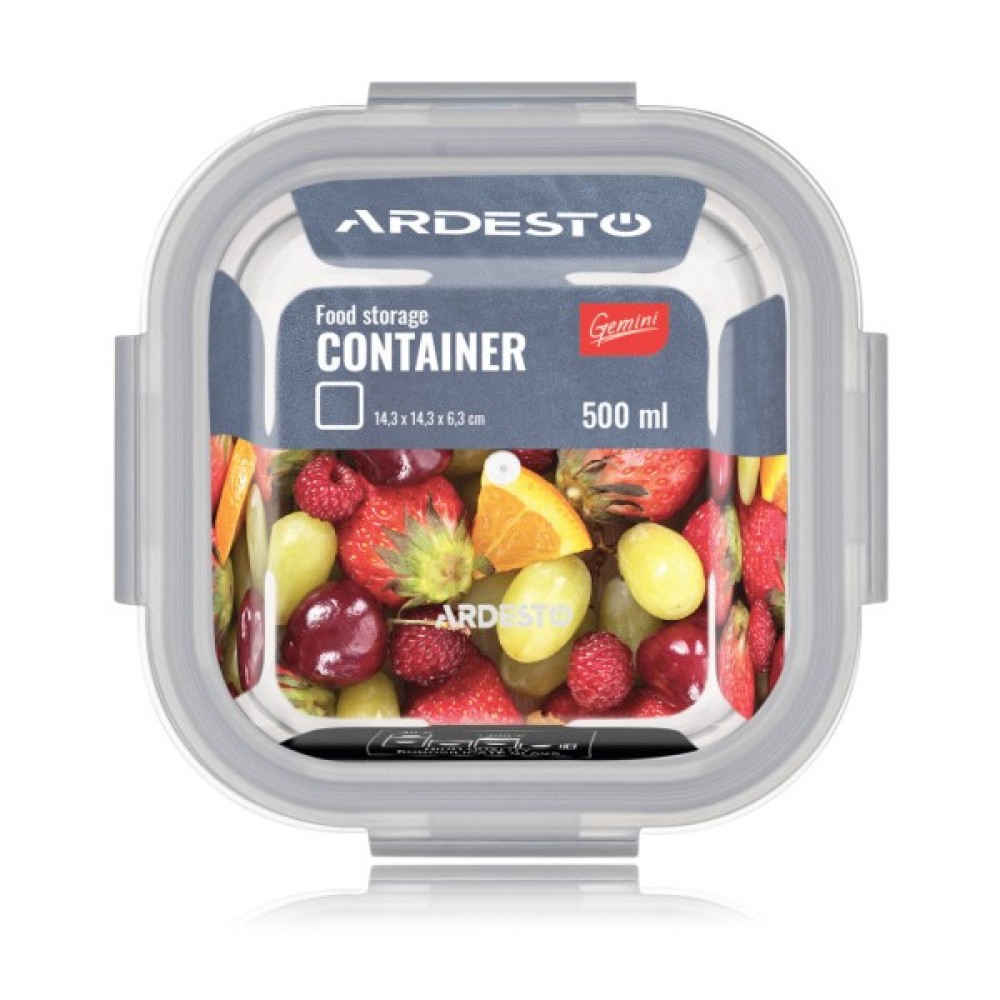 Харчовий контейнер Ardesto Gemini квадратний, 0.5л, боросилікатне скло, прозорий (AR1250BSQ)