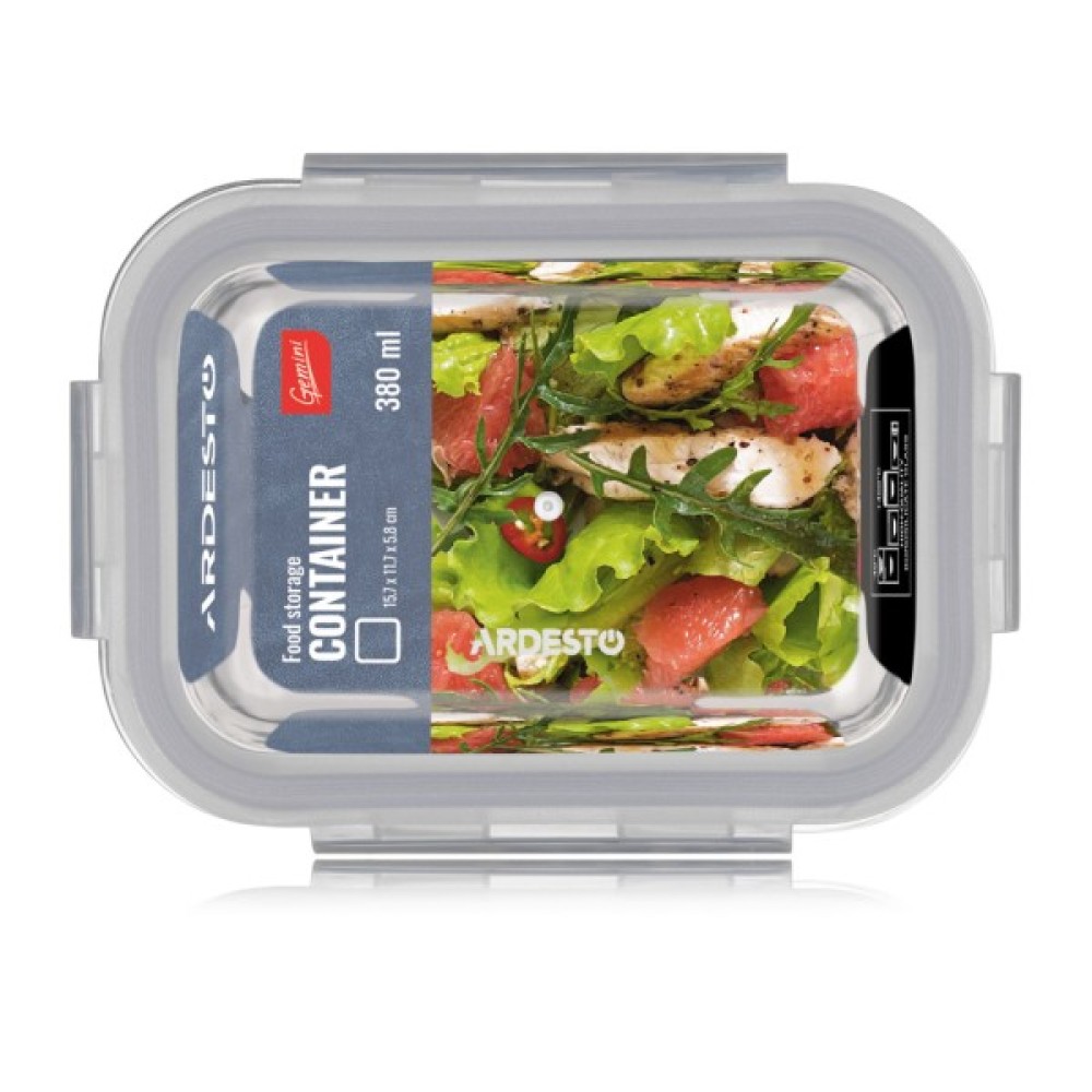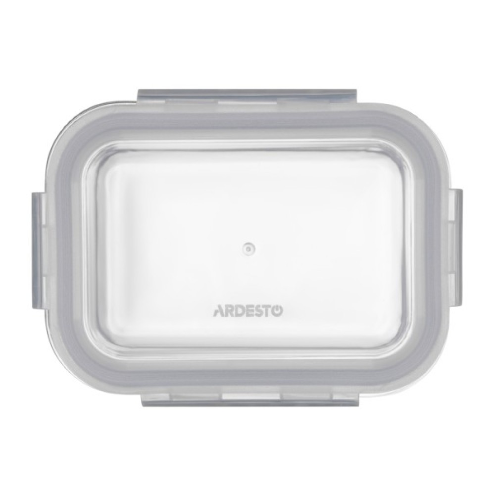 Контейнер виготовлено з екологічного боросилікатного скла, яке не вбирає запахів, зберігаючи аромат і смак продуктів, та гарантує довговічність виробу. Пластикова кришка забезпечує герметичність. Завдяки термостійкості виробу його можна залишати в морозильній камері, холодильнику, використовувати для підігрівання страв в мікрохвильовій печі або приготування в духовій шафі (без кришки). Виріб легкий у догляді – його можна мити в посудомийній машині. У контейнері зручно як зберігати страви або продукти вдома, так і брати з собою в офіс чи в подорож.