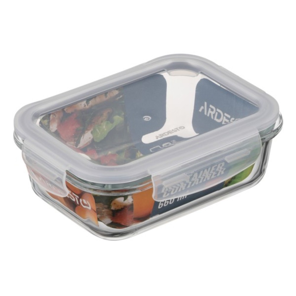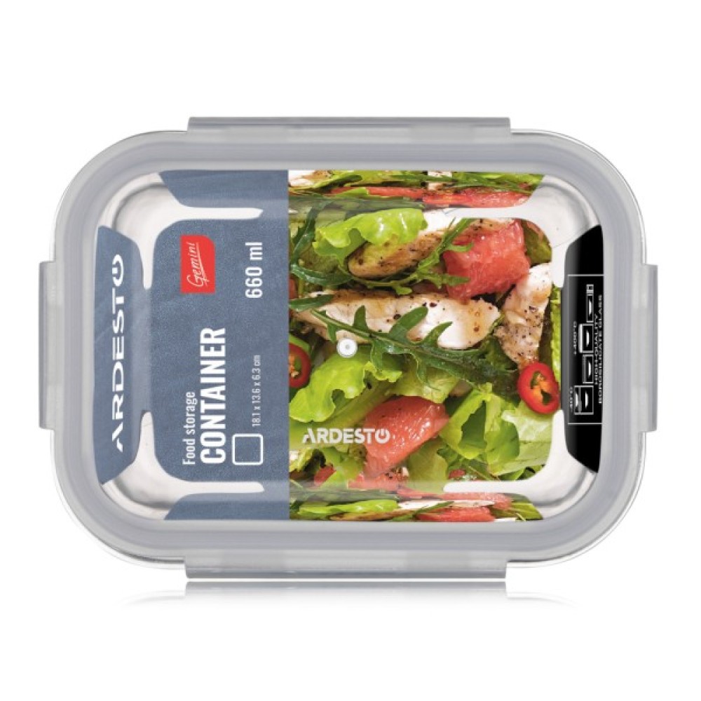 Харчовий контейнер Ardesto Gemini прямокутний, 0.66л, боросилікатне скло, прозорий (AR1260BRC)