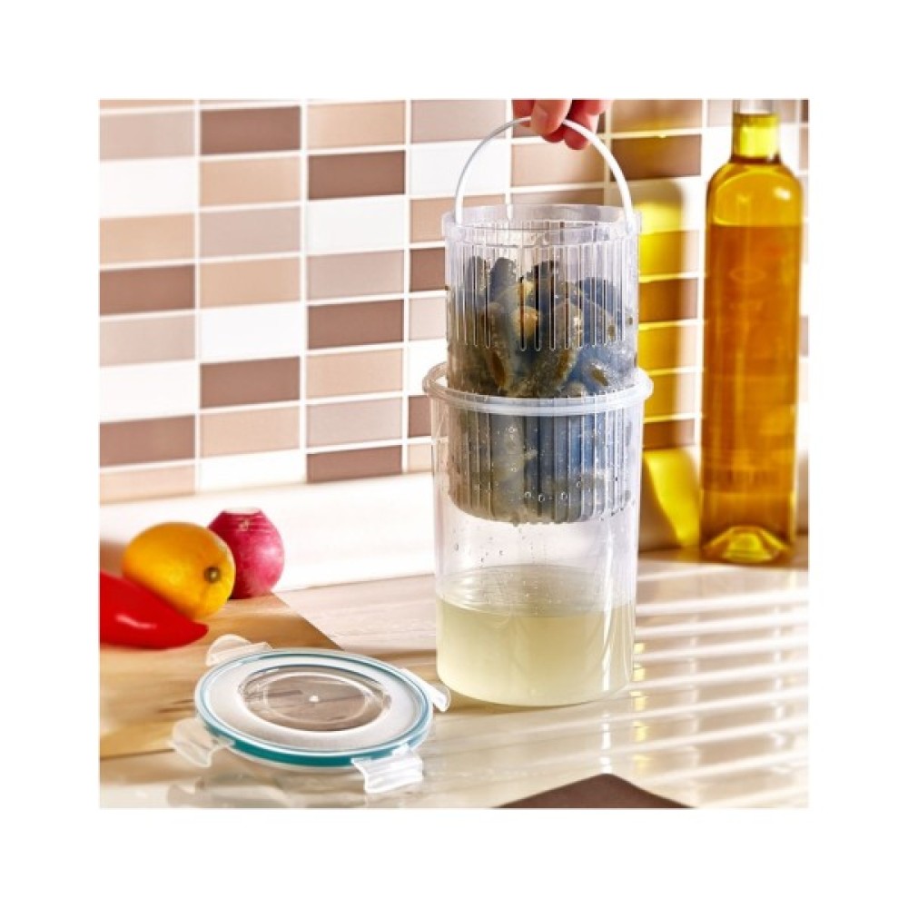 Контейнер Irak Plastik Fresh з дуршлагом ідеальний варіант для солінь та маринованих продуктів. Кришка герметична, не пропускає рідину та запах завдяки резиновому ущільнювачу та надійним фіксаторам. Ручка зручна для переноски, також вона складається для компактного зберігання. Матеріал виробу поліпропилен - найбільш безпечний з усіх видів пластику, матеріал гнучкий, не має власного запаху, безпечний при контакті з харчовими продуктами.
