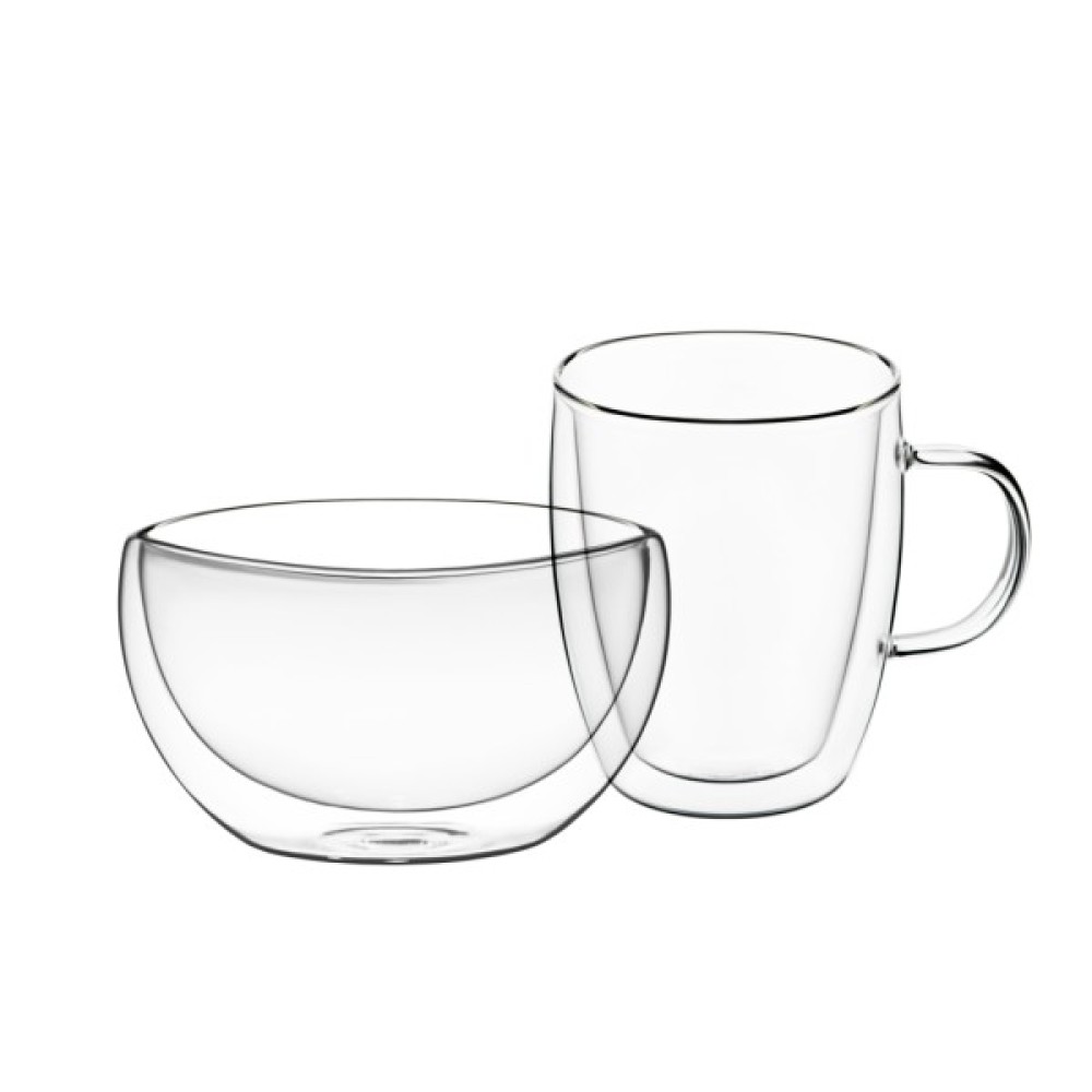 Комплект посуду Ardesto набір для сніданку 270 мл чашка + 500 мл піала прозорий (AR2650BHR)