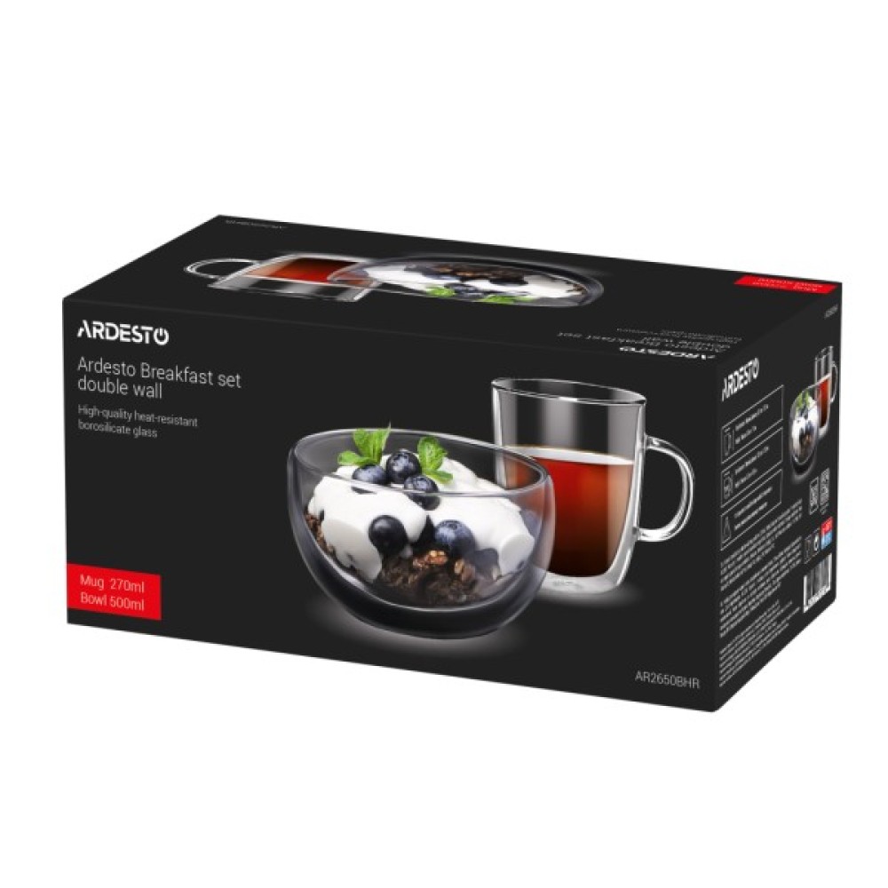 Комплект, посуду, Ardesto, набір, сніданку, 270, мл, чашка, 500, мл, піала, прозорий, AR2650BHR