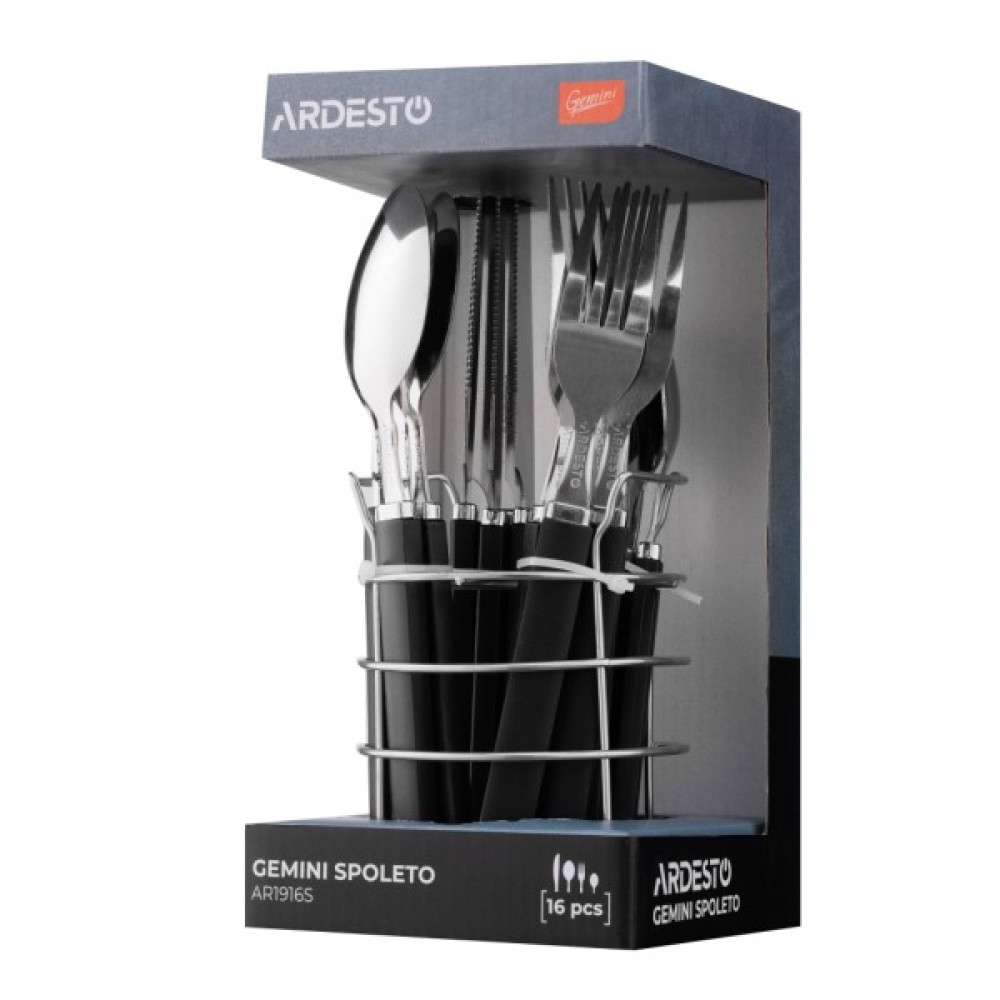 Набір столових приборів Ardesto Gemini Spoleto, 16 приборів, нержавіюча сталь, пластик, чорний (AR1916S)