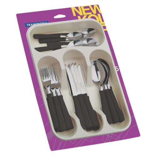 Набір, столових, приборів, Tramontina, New, Kolor, 25, предметів, лотку, Чорний, 23198075