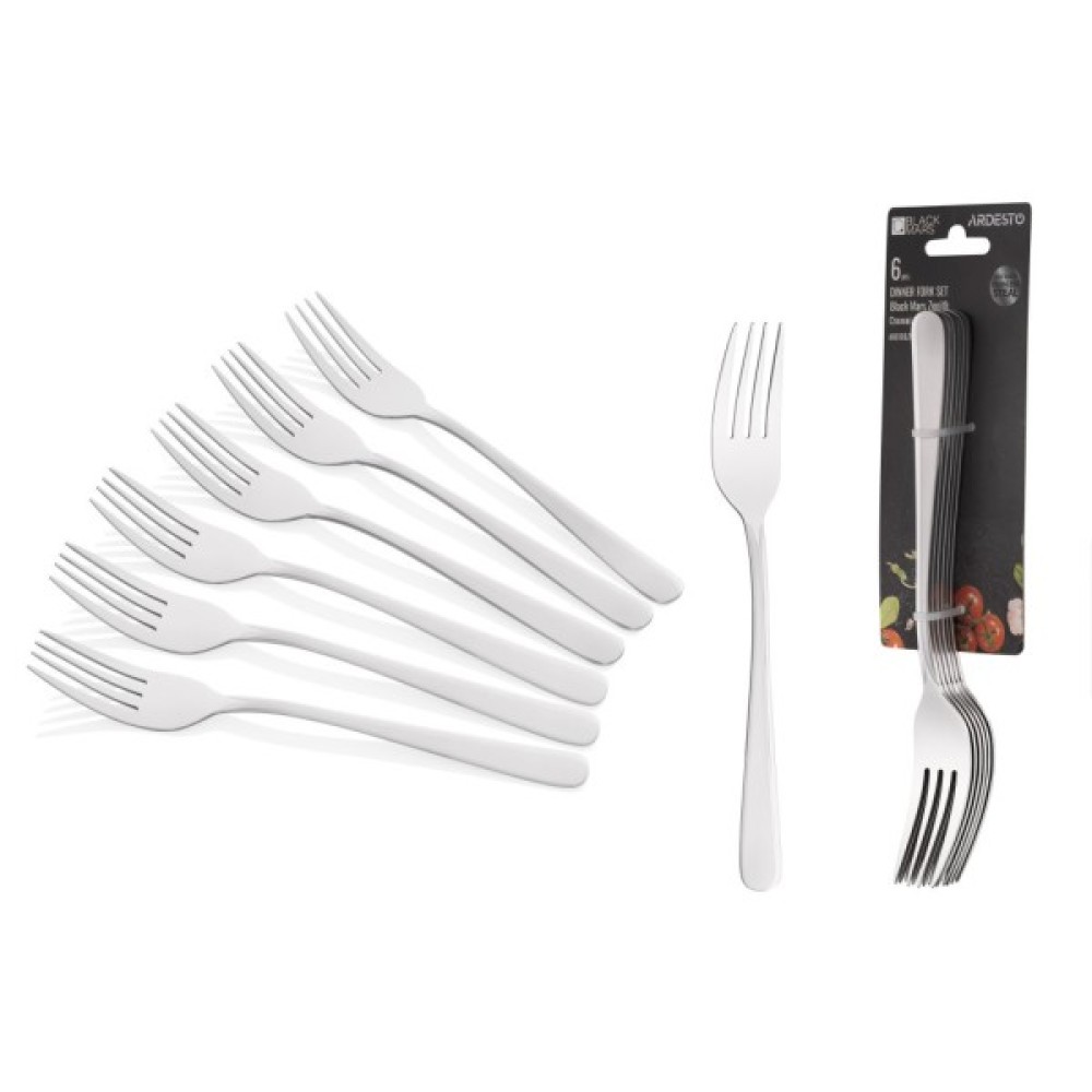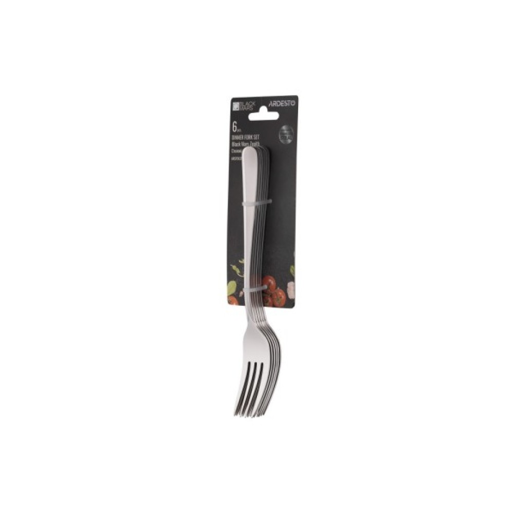 Столові вилки Ardesto Black Mars Zenith стануть у нагоді як для щоденного використання, так і для свят. Набір складається із 6 предметів. Зручні вилки виготовлені з нержавіючої сталі, що відрізняється міцністю, гігієнічністю та корозійною стійкістю. Мають елегантний дизайн та ергономічну форму. Дзеркальне полірування захищає вилки та збереже естетичний вигляд тривалий час. Вироби можна мити в посудомийній машині.