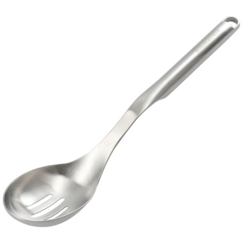 Цю металеву щілинну ложку від KitchenAid можна легко мити в посудомийній машині, стійку до іржі та температури до 260°C. Тримайте цю металеву ложку під рукою завдяки гачку для підвішування на кінці ручки. Довжина посуду: 33.8 см.
