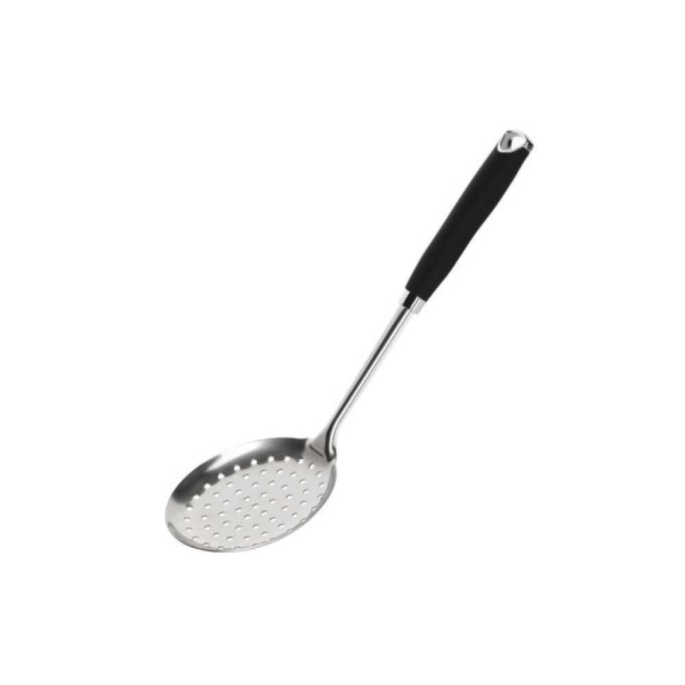 Зручна стильна шумівка з нержавіючої сталі завдовжки 35 см і діаметром 11,8 см. Оснащена ергономічним пластиковим руків’ям, що не нагрівається і є приємним на дотик. Стане надійним помічником при готуванні страв у великому і середньому посуді. Не рекомендовано мити в посудомийній машині.