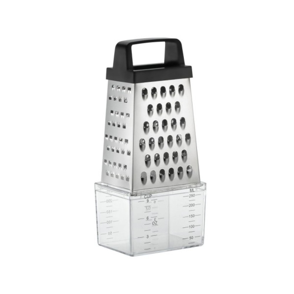 Сучасна терка колекції SHAM з нержавіючої сталі та корисним прозорим контейнером зі шкалою.