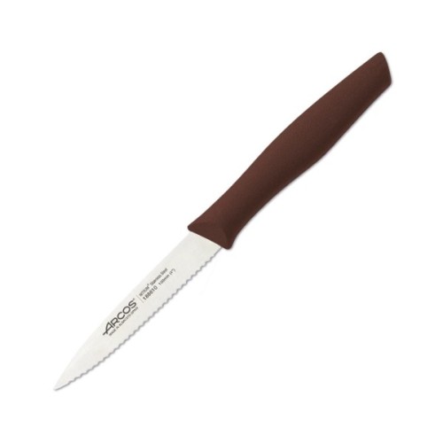 Ніж для чищення овочів 100 мм серії «Nova» Arcos із серейторним краєм розроблений для зручного очищення шкірки овочів та фруктів. Завдяки серейторному краю, ніж легко нарізає волокнисті продукти харчування. Серія кухонних ножів Arcos «Nova» ідеальна для побутого використання, а також для невеликих кухонь.