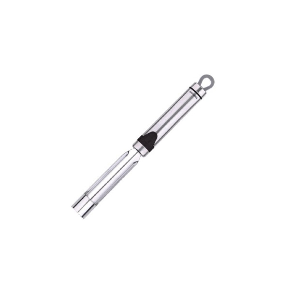 Ніж для видалення серцевини яблука Bergner Gizmo (BG-3226) кухонний аксесуар, виготовлений з нержавіючої сталі. Ручка з чорною вставкою та з петелькою для підвішування. Матеріал не вбирає запахи, не змінює смаку продуктів, екологічно чистий, не містить шкідливих та токсичних речовин. Призначений для чищення яблук.