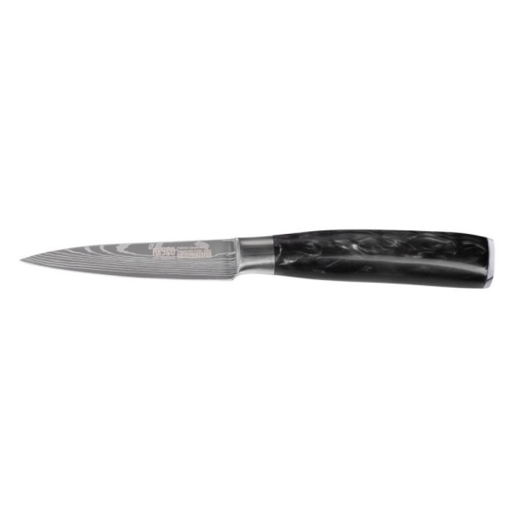 - Лезо з лазерним гравіюванням, стилізоване під дамаську сталь