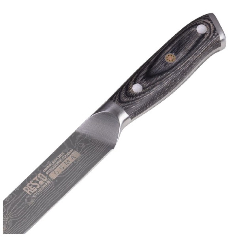 - Лезо з лазерним гравіюванням, стилізоване під дамаську сталь